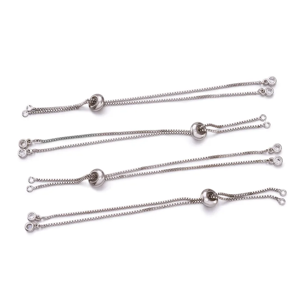 5 шт латунные браслеты слайдеры, с кубическим цирконием, коробки цепи, долговечные, позолоченные