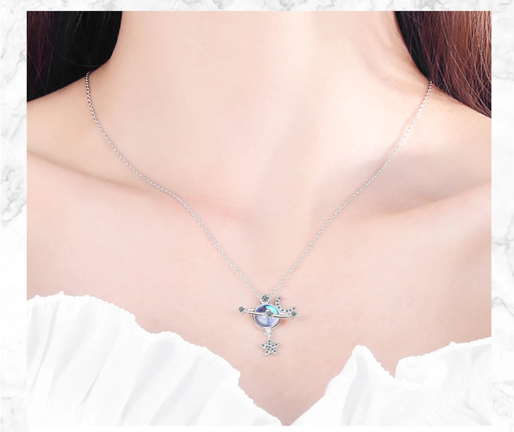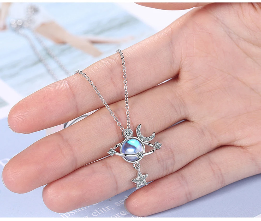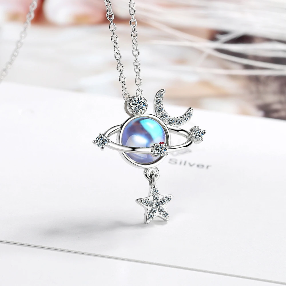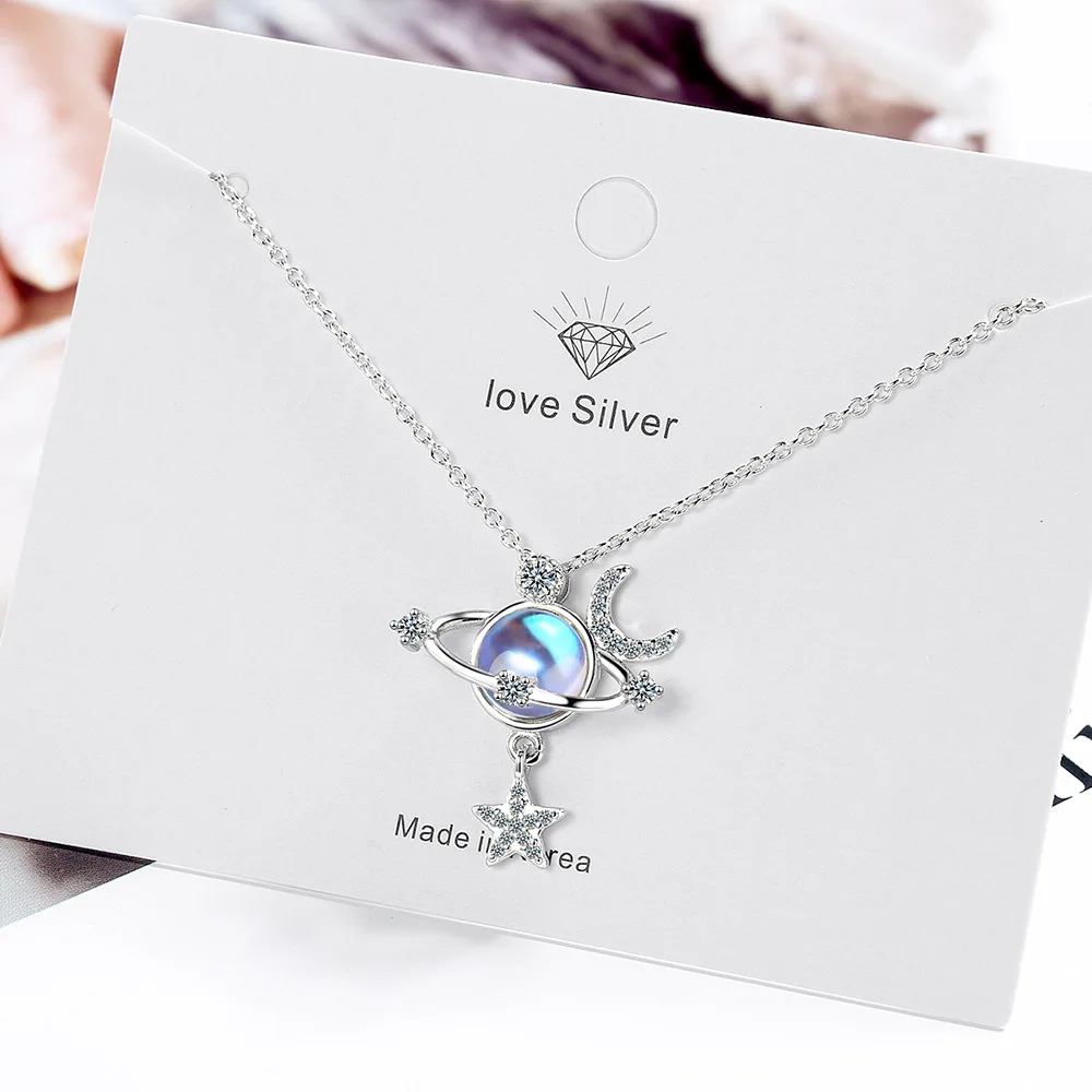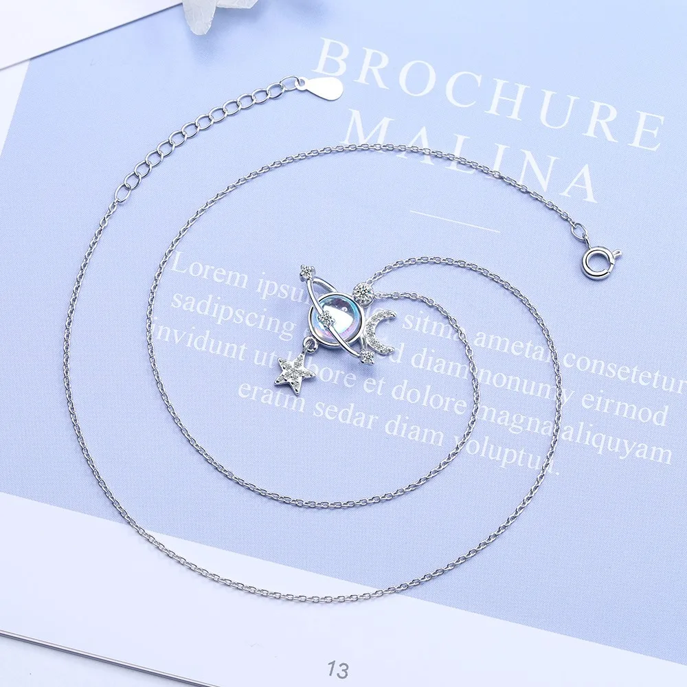 Женская цепочка с подвеской в виде Луны и звезды, из серебра 925 пробы, 45 см