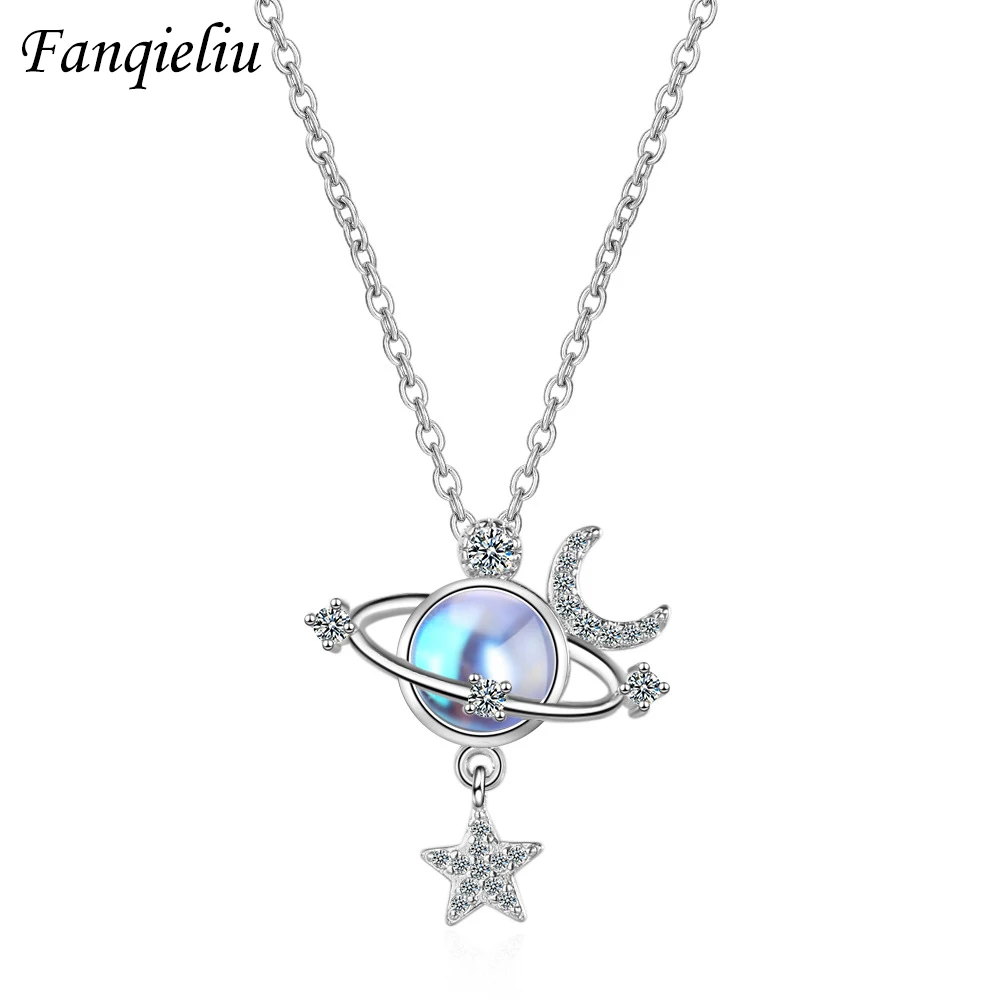 Наименование товара:Женское Ожерелье Fanqieliu, ожерелье из стерлингового серебра 925 пробы с подвеской в виде Луны и звезд, 45 см, FQL20243