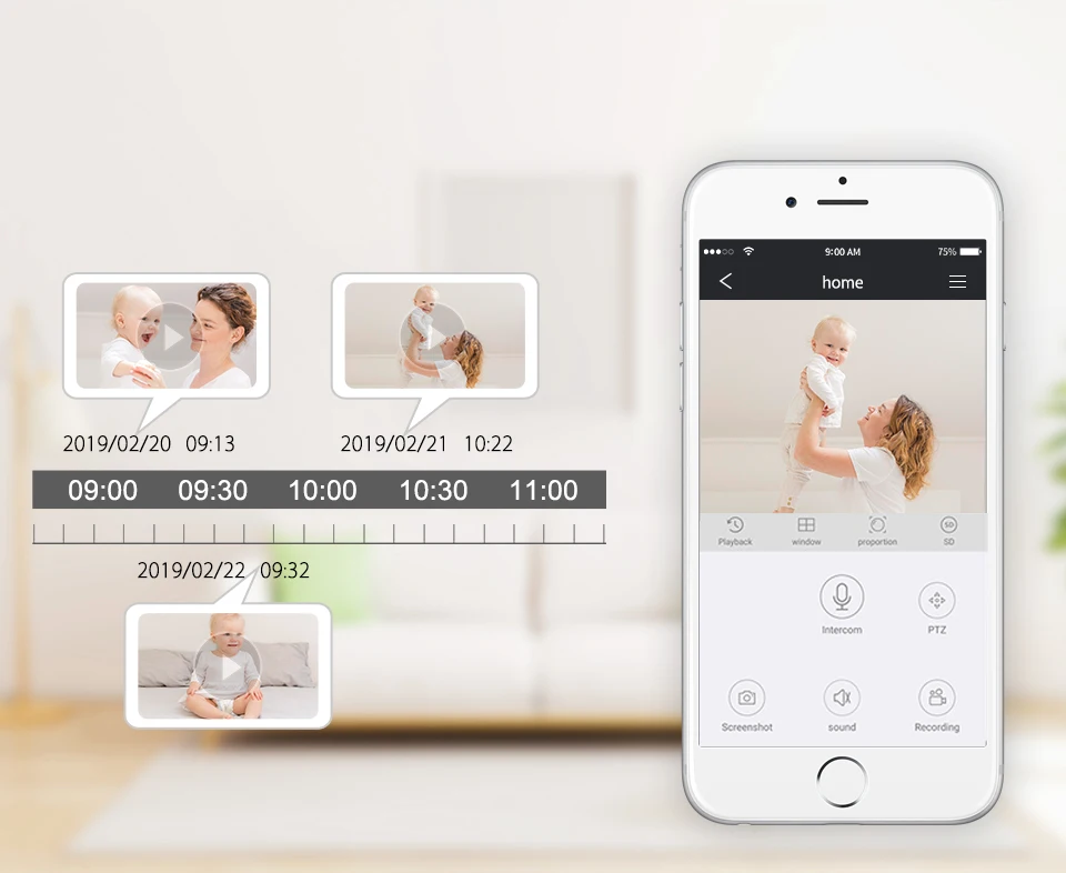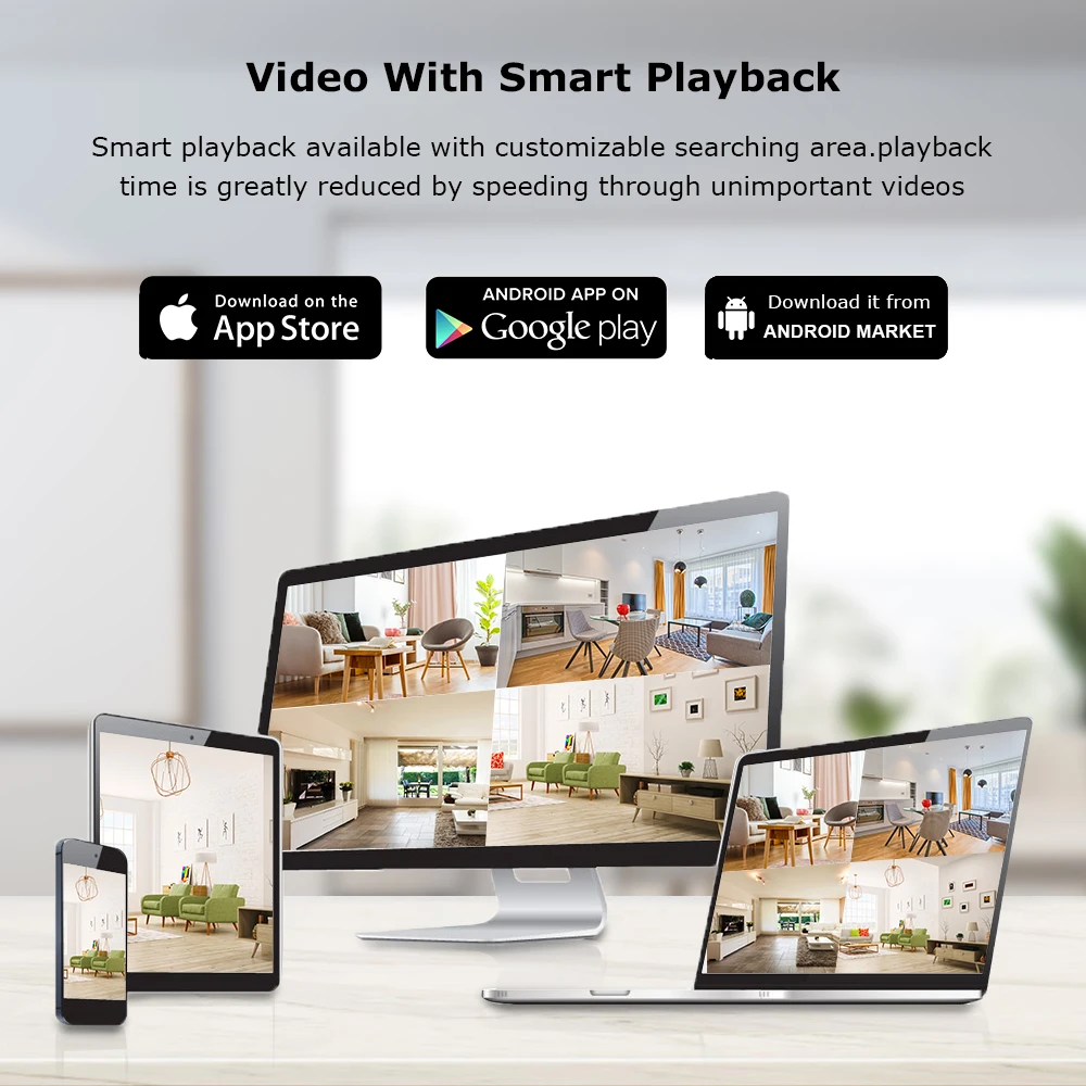 Поддержка ios, Android,Windows PC. С бесплатным приложением Eseecloud. Вы будете знать, что происходит, даже когда вас нет рядом, получайте уведомления и просматривайте видео в реальном времени или записанные кадры прямо с вашего телефона.