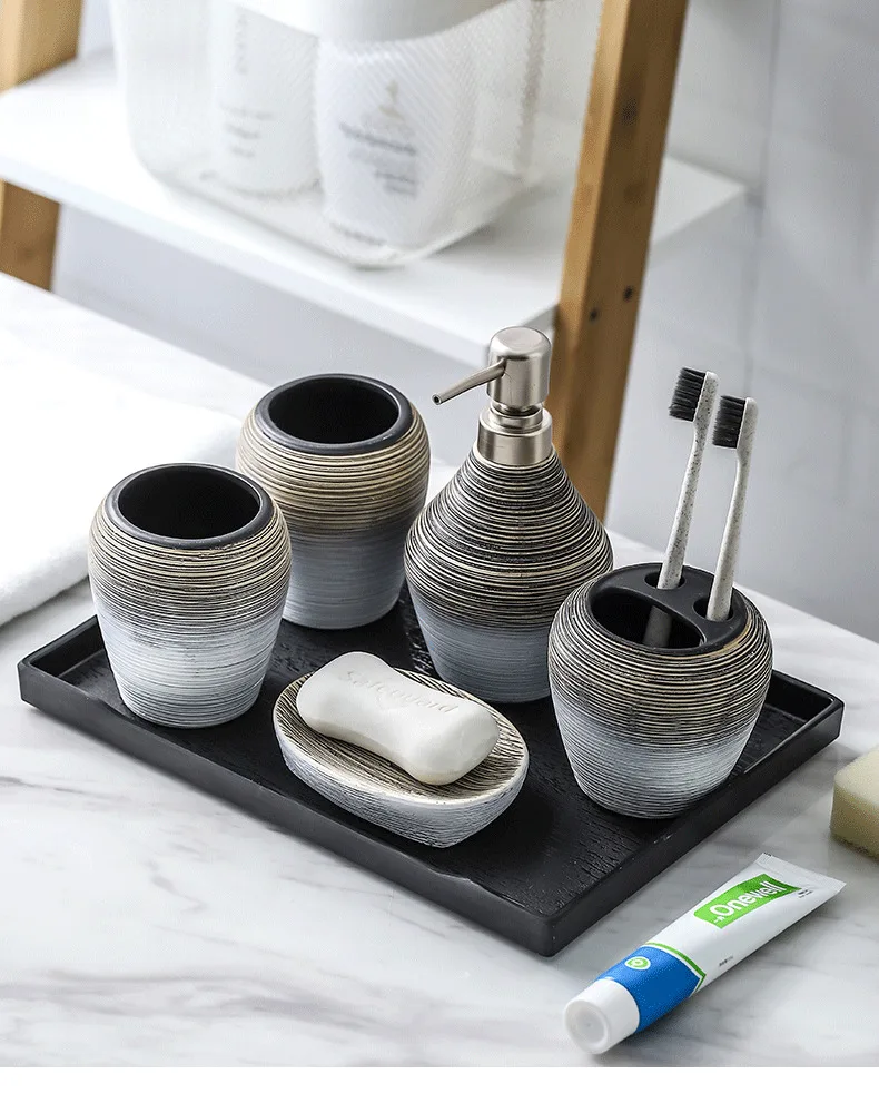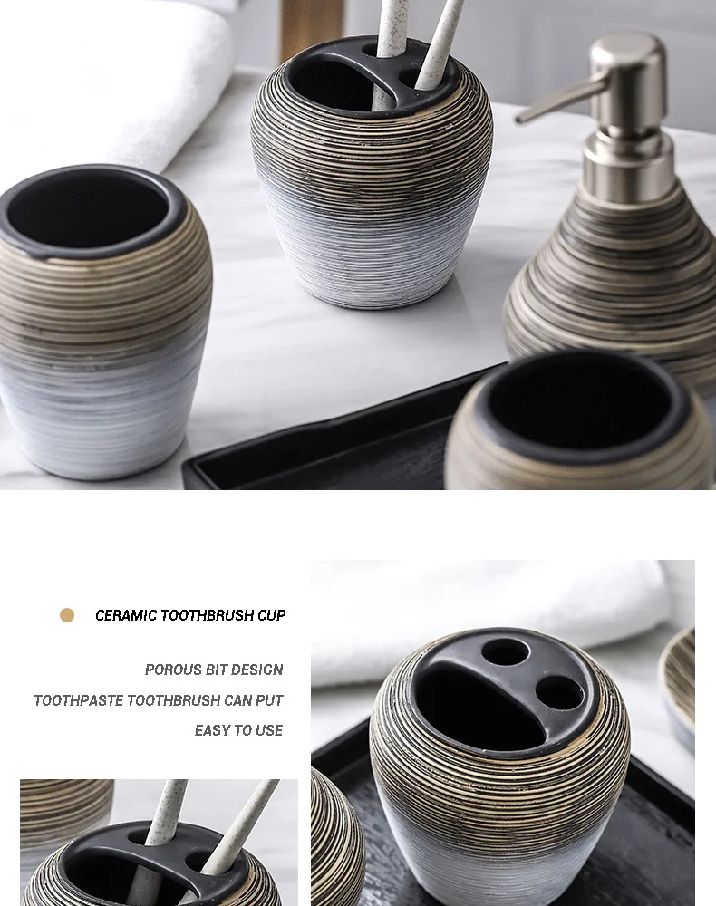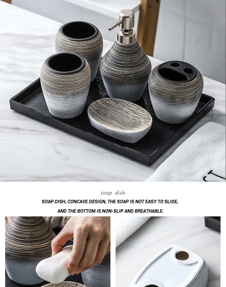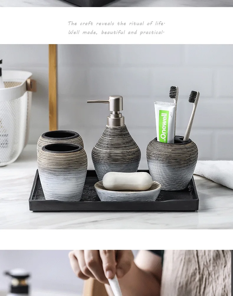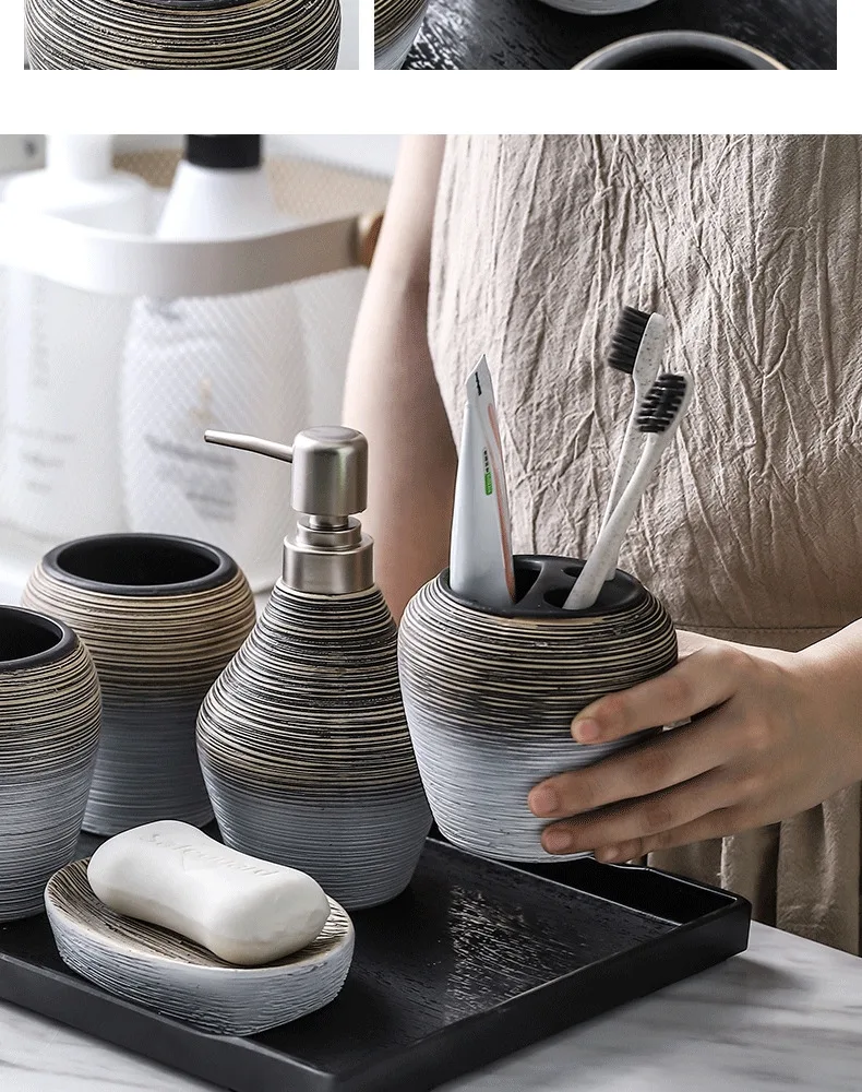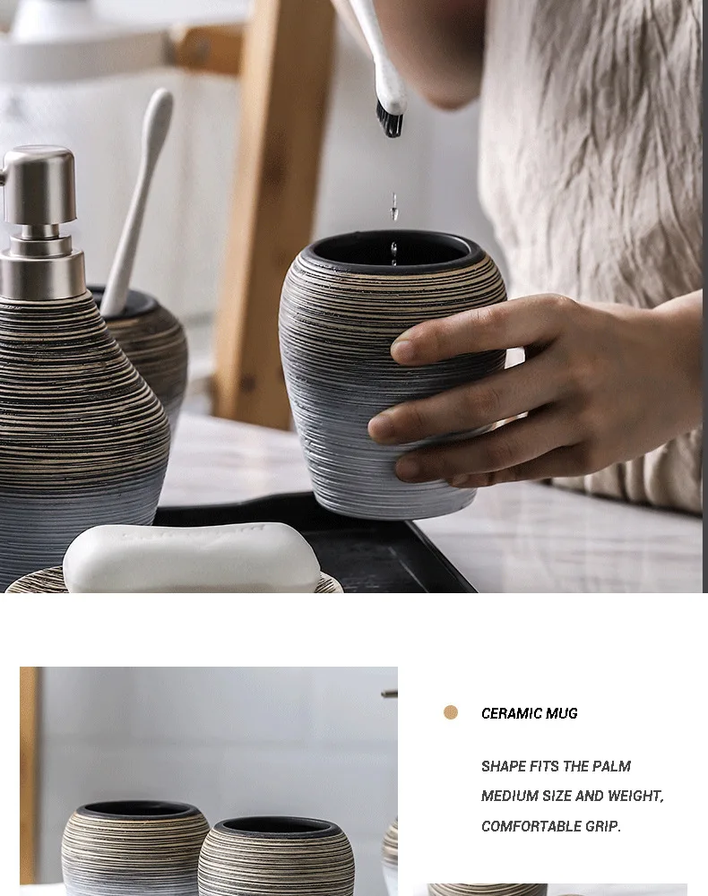 Керамические аксессуары для ванной комнаты ручной работы, набор для хранения, держатель для зубных щеток, диспенсер для мыла, эмульсионный флакон, чашка для полоскания рта в стиле ретро