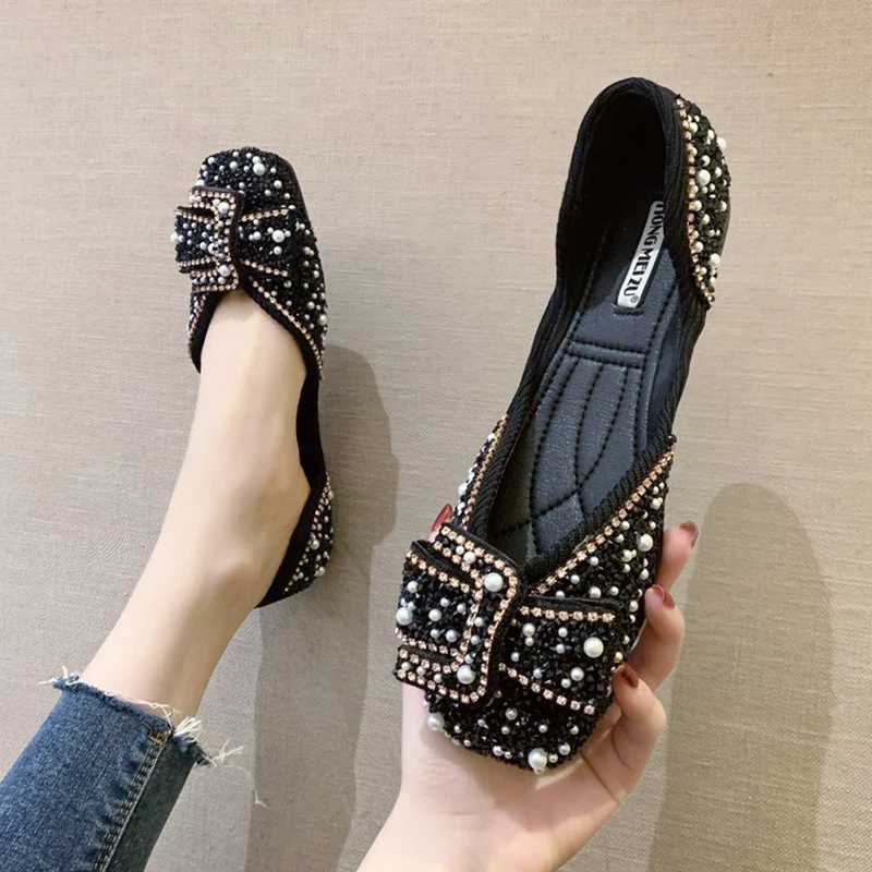 Женские туфли на плоской подошве, с кристаллами, жемчугом, бабочкой...