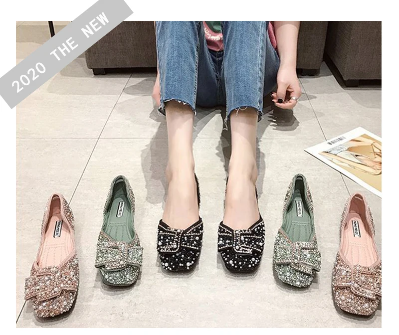 2020 весенние женские лоферы на плоской подошве, Мокасины с блестка...