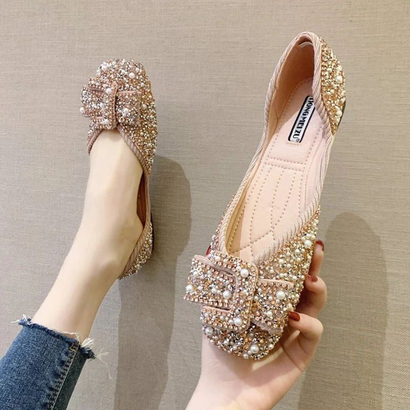 Новинка 2020, женская повседневная обувь с бусинами и открытым носк...