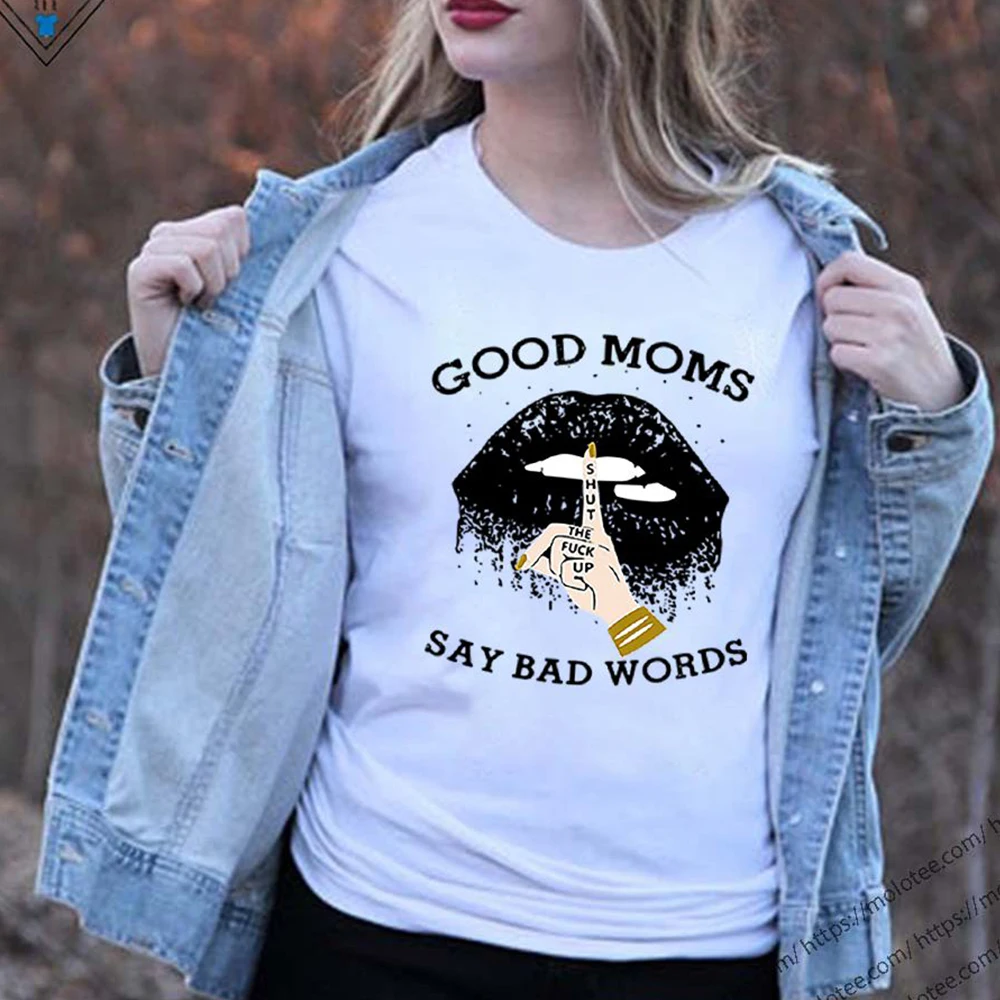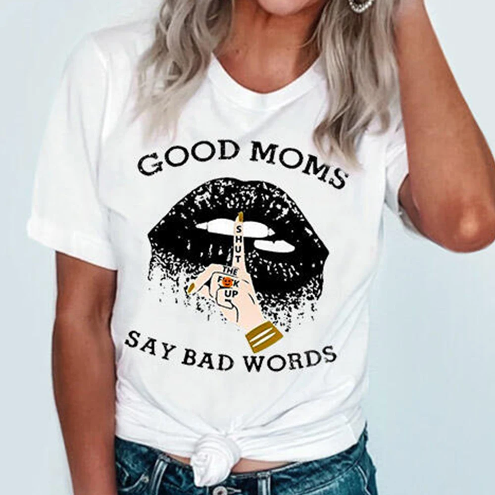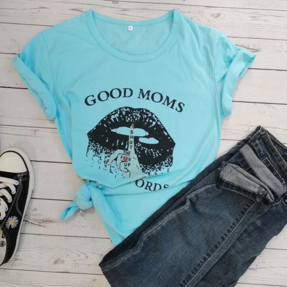 Забавные футболки с надписью Good Moms Say Bad Words, женская сексуальная летняя футболка с принтом в виде губ, хлопковые женские топы, футболка для мамы и жизни, Футболки унисекс Tumblr