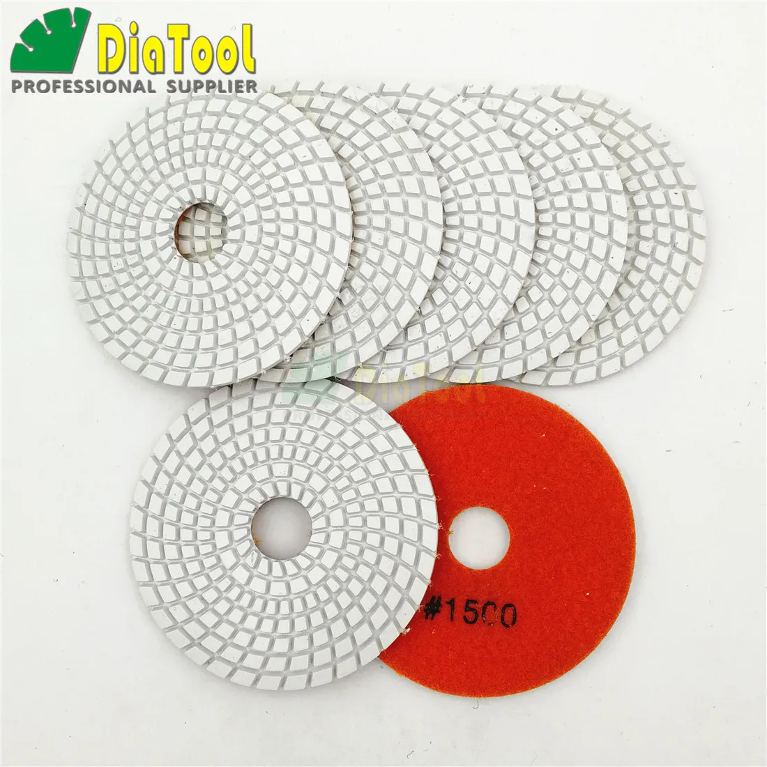 SHDIATOOL 7 pices 4 "diamant tampons de polissage flexibles humides B #1500 100mm disque de ponage liaison blanche pour granit pierre marbre granit