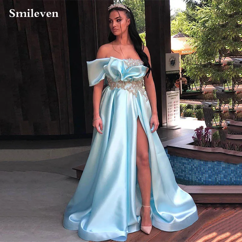 Голубое вечернее платье без бретелек Smileven, длинное платье-Русал...