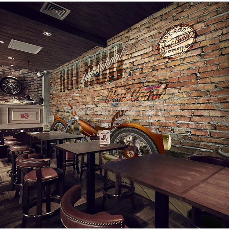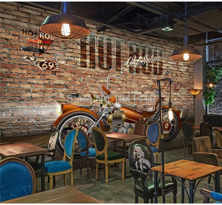 Пользовательские фото обои ретро 3D стерео мотоцикл кирпичная стена Фреска ресторан кафе фон стены Декор Papel De Parede Фреска