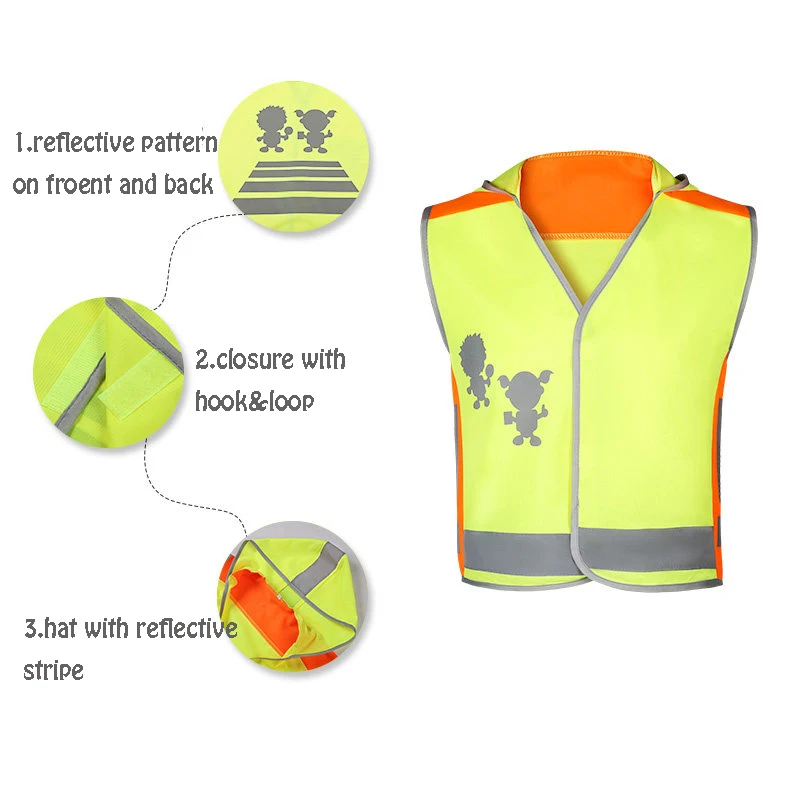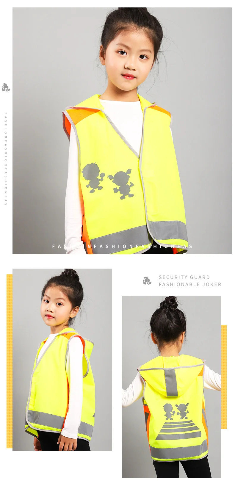 Детский светоотражающий жилет желтый флуоресцентный Безопасный Жилет hi vis высокая видимость одежда детей Безопасный дорожного движения студент безопасности ткань