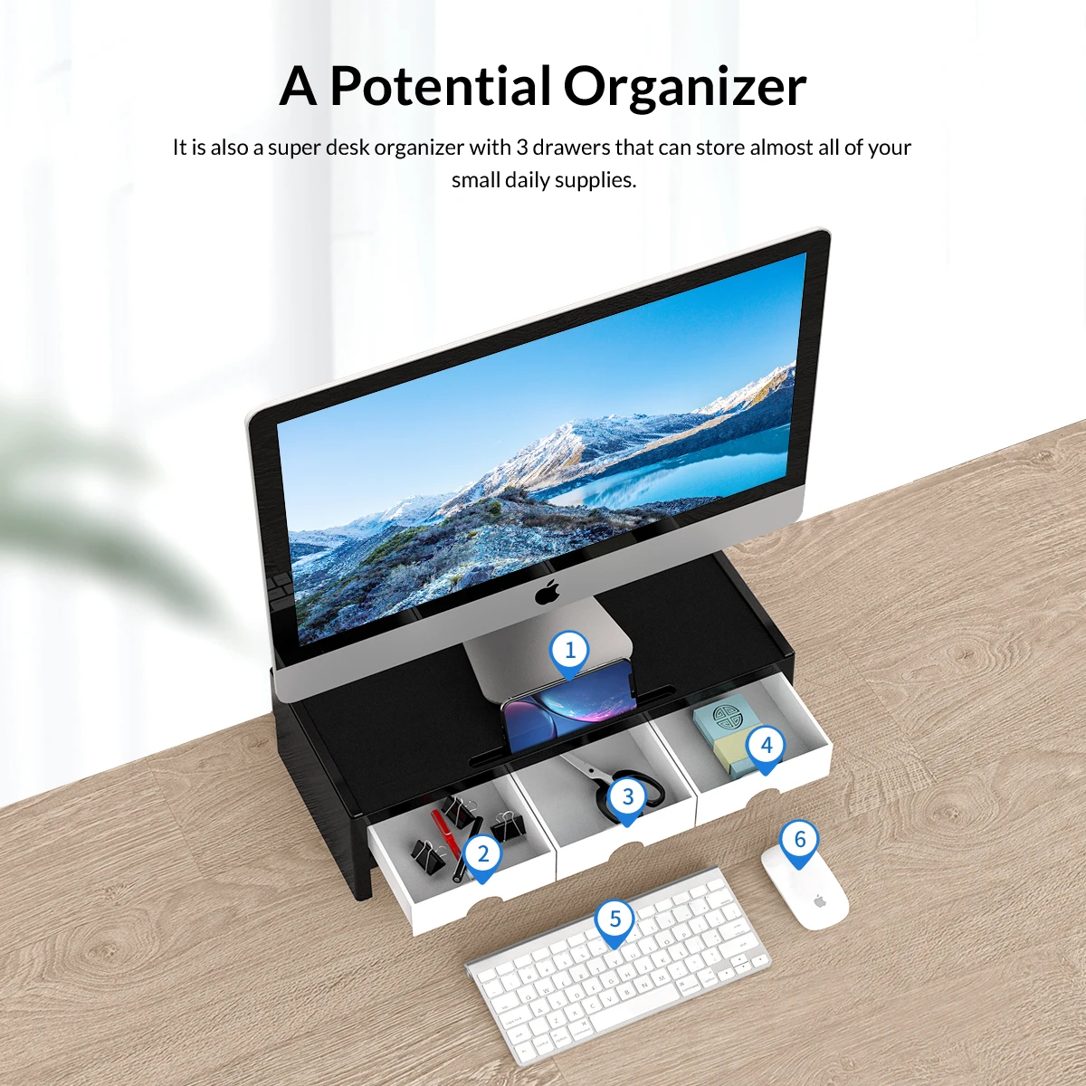 ORICO компьютерный монитор Подставка стояк Настольный держатель кронштейн с 3 ящиками ящик для хранения Органайзер стоячий стол для ПК ноутбука офиса