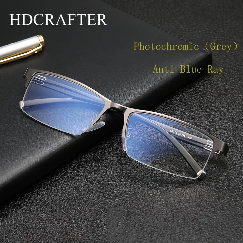 HDCRAFTER металлический сплав анти-синий луч фотохромные серые очки Оптические очки оправа для мужчин близорукость по рецепту оправы для очков