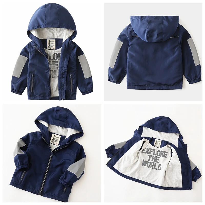 От 1 до 7 лет Одежда для мальчиков, куртки, пальто, весенне-осенние куртки, детская одежда с принтом, ветрозащитная ветровка с капюшоном для маленьких мальчиков