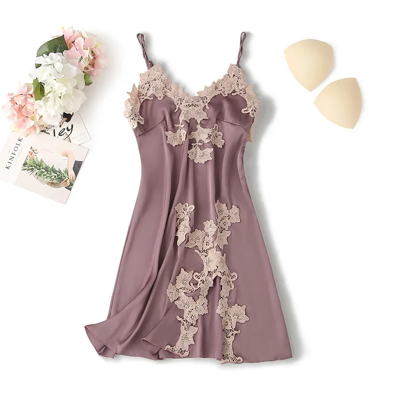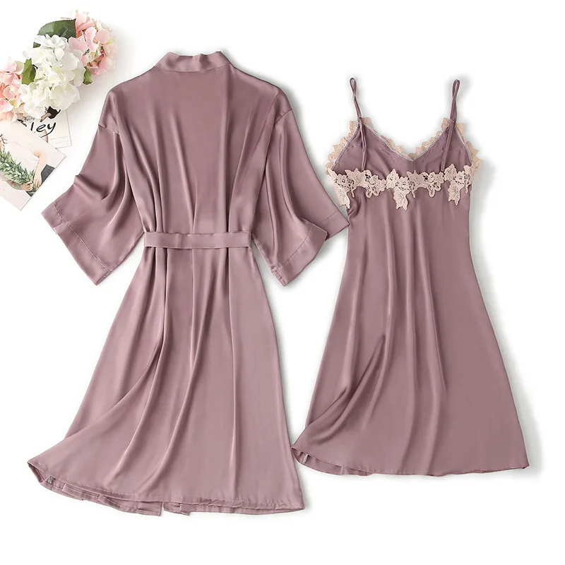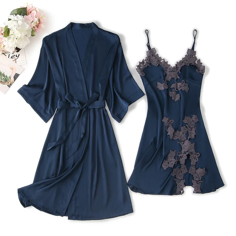 Комплект женский атласный кружевной из халата и ночной рубашки