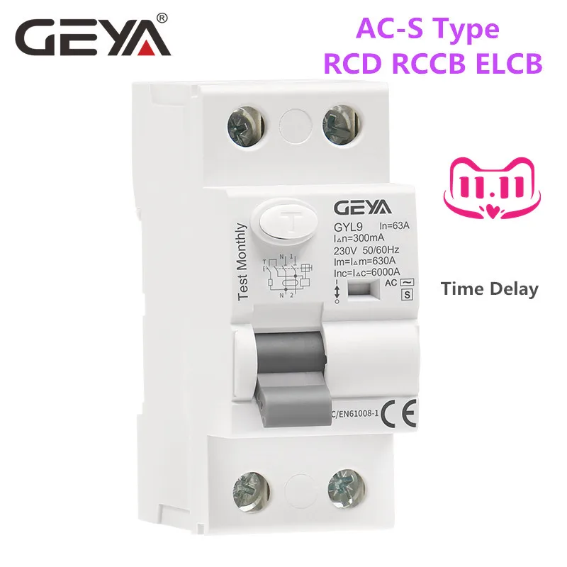 Электромагнитный автоматический выключатель GEYA GYL9 AC-S Type с задержкой RCD RCCB ELCB