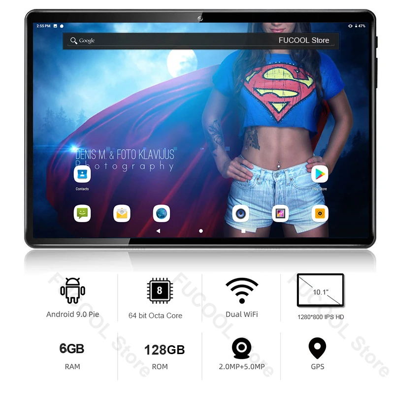 Планшет с 10-дюймовым дисплеем, восьмиядерным процессором, ОЗУ 6 ГБ, ПЗУ 128 ГБ, ОС Android 9,0, двумя SIM-картами, 4G LTE, телефонные звонки, Wi-Fi, GPS, 1280X80, IPS + подарки