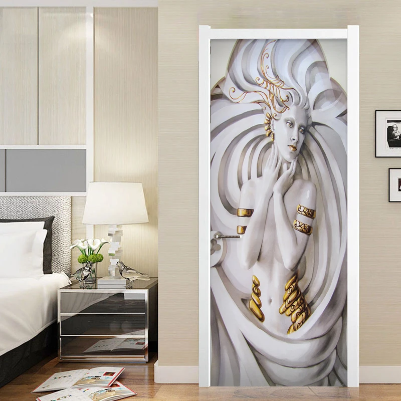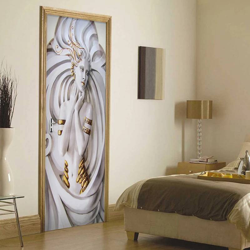 Дверная наклейка инструменты дверные обои украшение большие фрески 2 шт.компл. ПВХ водонепроницаемый 3D стереоскопический Искусство Статуя гостиной спальни