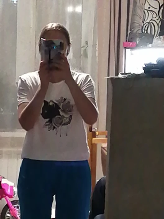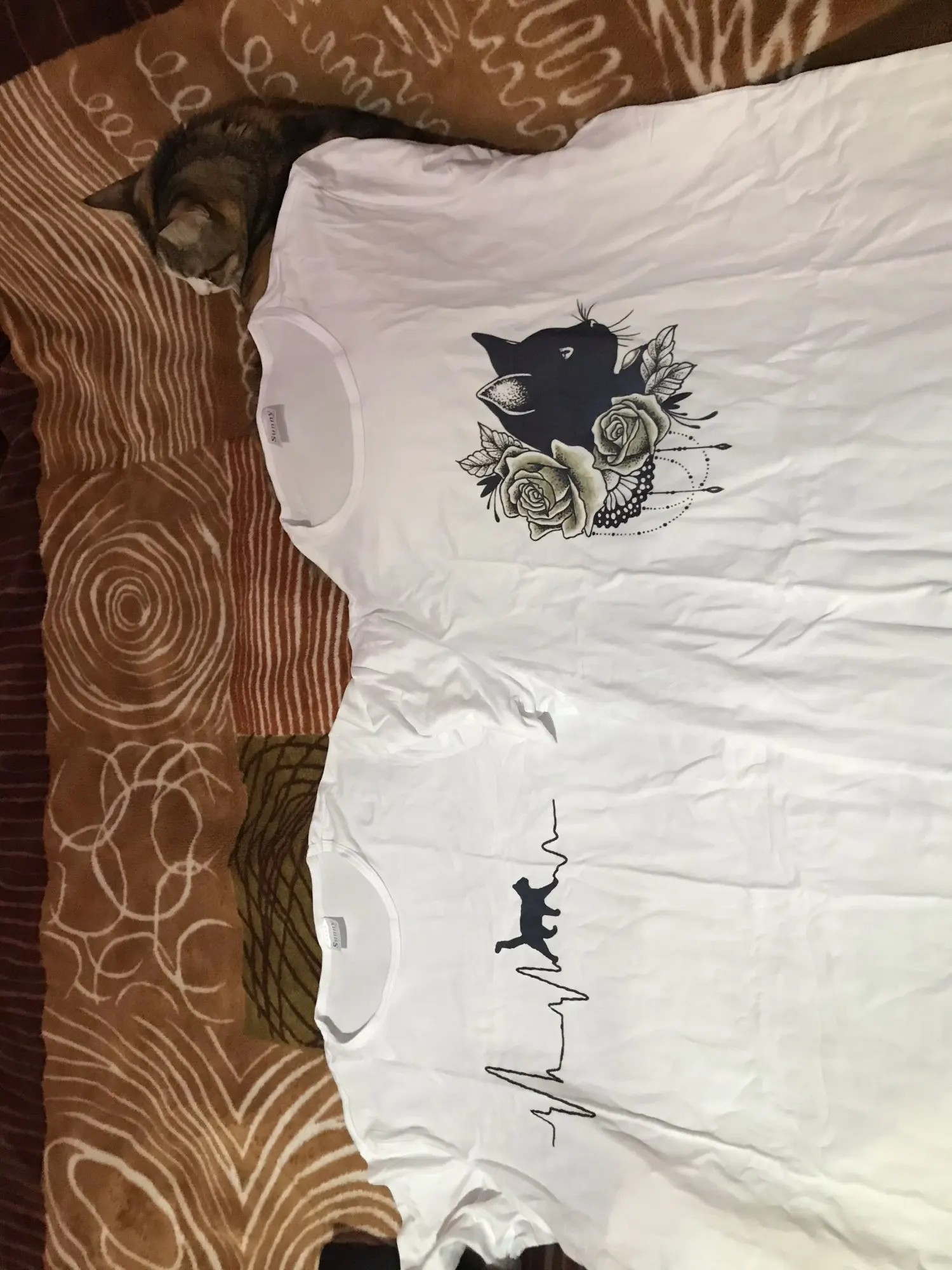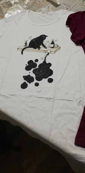 Великолепные футболки. Принт немного подкачал, но материал просто отличный (вискоза). Очень понравились, брала две и обеими довольна. Пришло быстро, почти месяц. Товар хороший, продавца рекомендую.