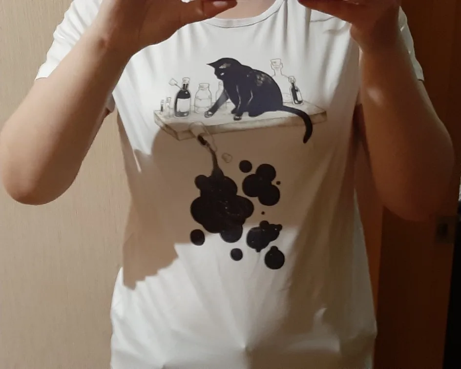 Красивая рубашка, но принт размыт. Не очень черный, так немного дезинфицирует.