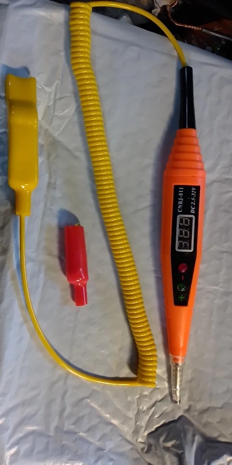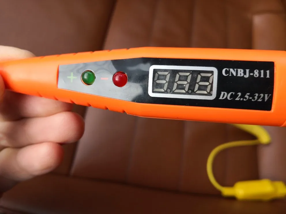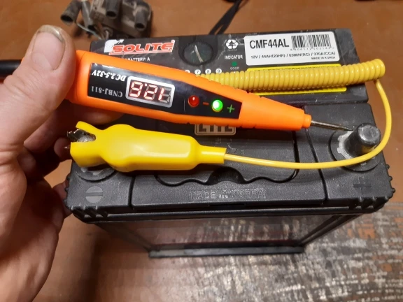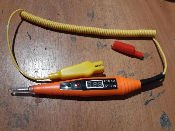 хороший тестер, для автомобиля отлично подходит. крокодила цепляет на минус, щуп на +. спасибо за компактный тестер.