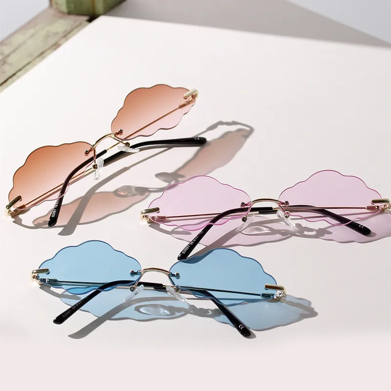Модные солнцезащитные очки без оправы в форме облака, винтажные прямоугольные очки в стиле стимпанк, женские очки конфетных цветов с металлической оправой, очки для вождения
