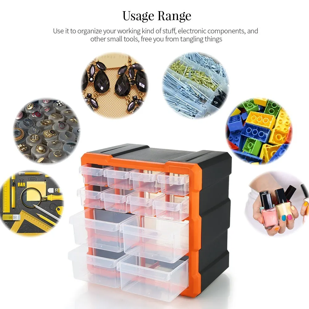 Этот пластиковый ящик для хранения 12 отделений поможет аккуратно хранить ваши мелкие детали и компоненты и легко найти их. Эта коробка аксессуаров поможет вам разместить аксессуары в индустрии ногтей, серьги, кольца, бусы, ремесла, оборудование, принадлежности для ремесел, рыболовные снасти, шитье, небольшие инструменты в аппаратной промышленности и других мини-товаров удобно и идеально подходят для организации и хранения мелких предметов. Особенности: Легко хранить и повышать эффективность обработки материалов практически в любой отрасли. 12 прозрачные сетки жесткая пластмассовая коробка для хранения Органайзер с ящиком, простой и практичный. Дизайн сетки в разделенной коробке защищает предметы в отсеках от переноса. Корпус одного ящика прозрачный, можно увидеть предметы внутри коробки, удобно найти то, что вам нужно. Используйте его, чтобы организовать свой рабочий вид вещей, электронных компонентов и других небольших инструментов, освободите вас от запутывания вещей. Можно повесить на стену с 4 отверстиями для крючков на спине, также можно положить на стол и внутри шкафа для косметики, небольших фитингов. Несколько отсеков для классификации различных крючков, весов, дробей, мух, насадок и инструментов для рыболовных снастей. Характеристики: Тип: 12 ящиков, 16 решеток Материал: ПП + пс Цвет: черный + оранжевый Подходящее место: шкаф, автомобиль, столовая, туалет, ящик, гостиная, под кроватью, сад, оборот переноски, хранилище, балкон, кабинет, стол, спальня, Прачечная, кухня, ванная комната и т. Д. Размер изделия: 265*260*160 мм/10,4*10,2*6,3 дюйма Вес изделия: 1185 г/41,8 унций Размер посылка: 26,5*26*16 см/10,4*10,2*6,3 дюйма Вес посылка: 1202 г/42,4 унций Примечание: Если вы хотите установить коробку на стену, пожалуйста, купите винты самостоятельно (винты не включены). Посылка: 1 * пластиковый контейнер для хранения