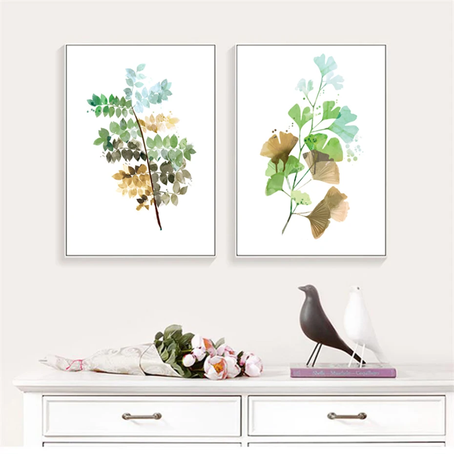Тропическая Пальма Ginko лист зеленый маленький свежий настенный художественный плакат современные домашние украшения для офиса ванной спальни без рамки