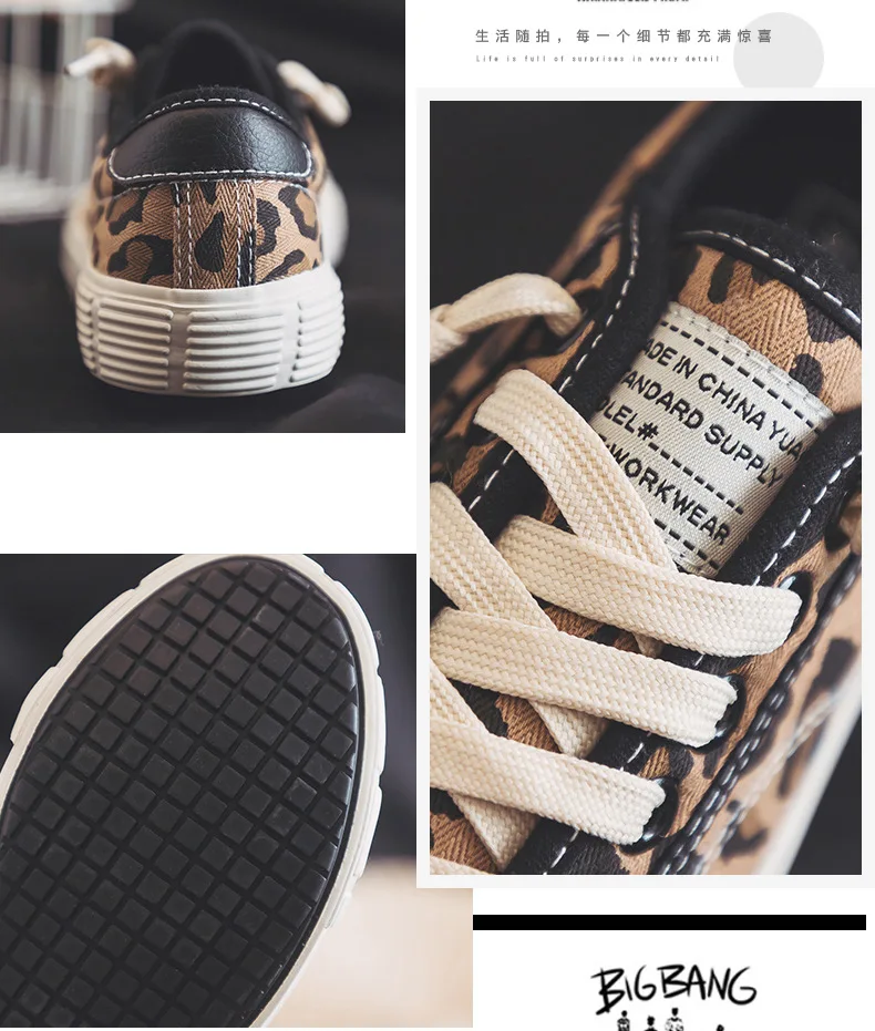 Кеды женские с вулканизированной подошвой, классические холщовые кроссовки с низким берцем, в ретро-стиле, леопардовые, на шнуровке, спортивные, белые, черные