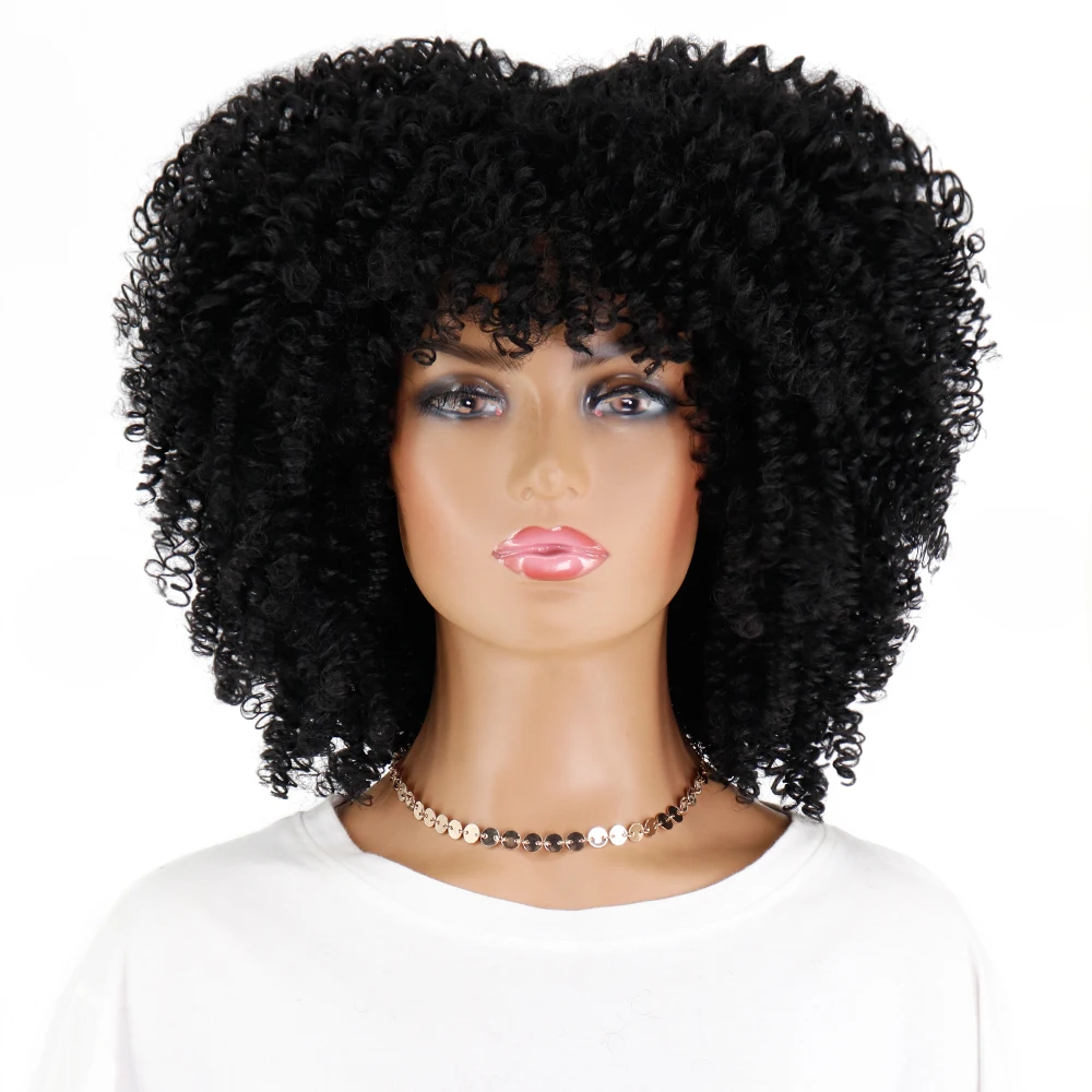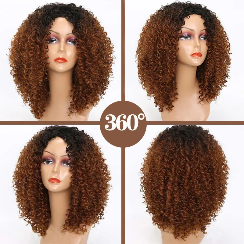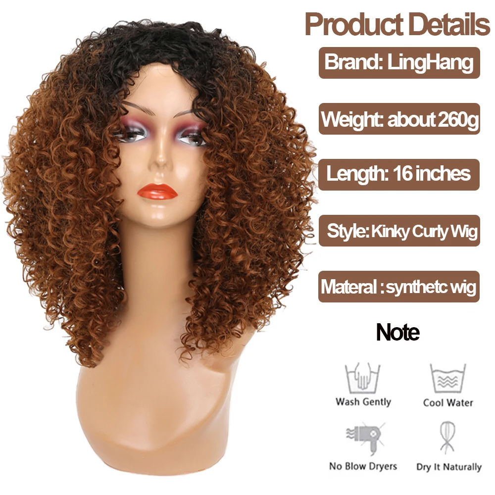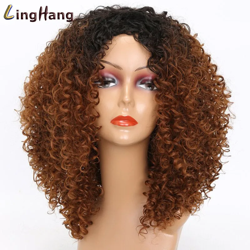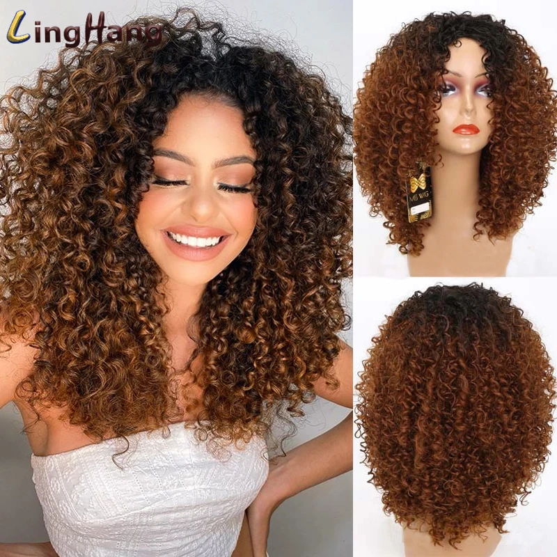 Парик LINGHANG, кудрявый, кудрявый, афро, синтетический короткий парик с челкой, смешанные коричневые и светлые парики для чернокожих женщин, 14 дюймов