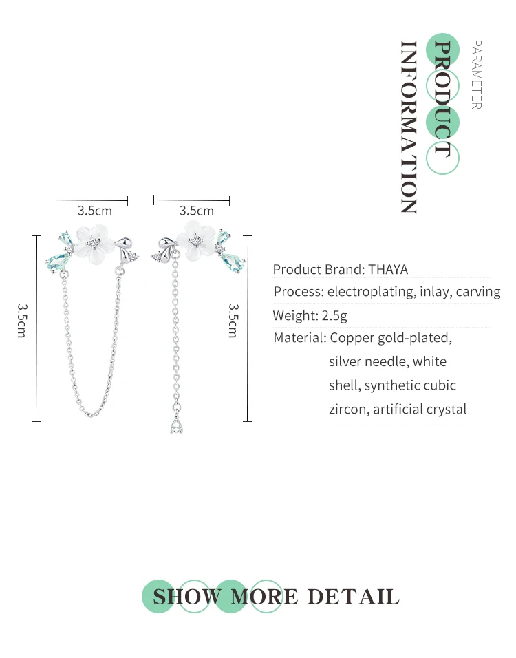 【Наименование information】 Бренд товара: THAYA Материал: медная платина, Серебряная игла, белая оболочка, синтетический кубический циркон, искусственный кристалл Процесс: Гальваническое покрытие, инкрустация, резьба Вес: 2,5 г Размер: 3,5 см