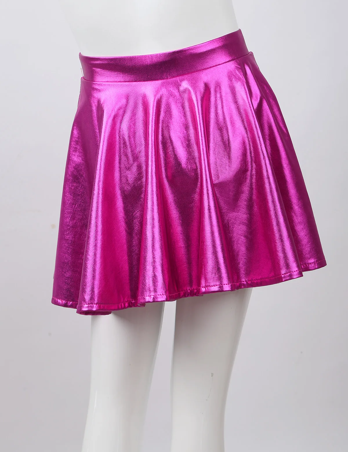 Детский Блестящий металлический расклешенный плиссированный трапециевидный мини скейтборд для девочек танцевальный Атлетический Блестящий высокий эластичный пояс