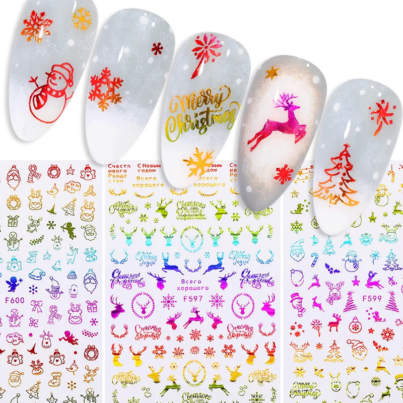 2021 новые рождественские Слайдеры для ногтевого дизайна, 3D наклей...