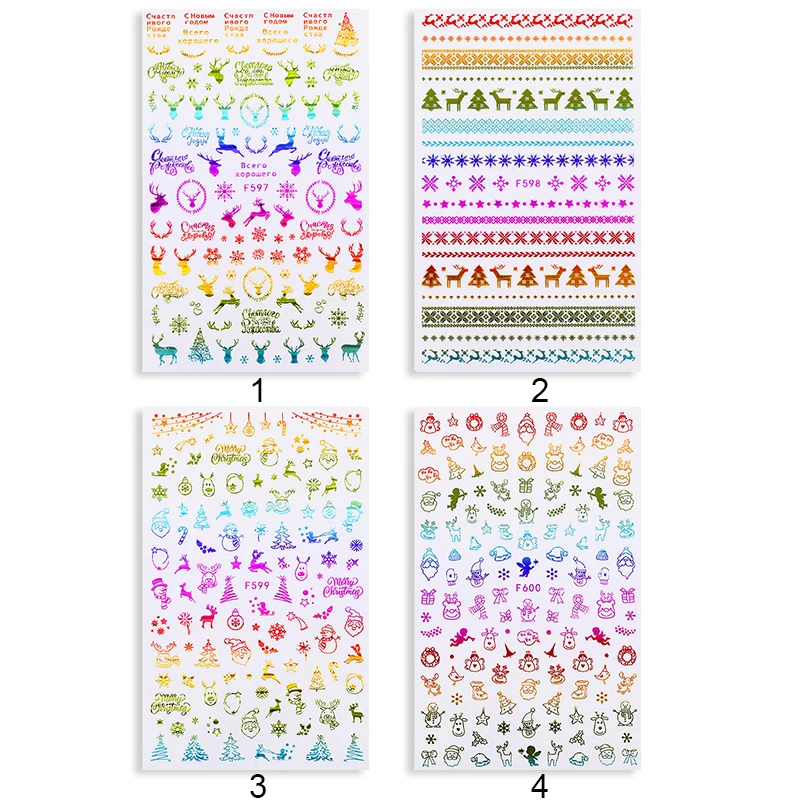 Рождественские наклейки для дизайна ногтей, Декоративные самоклеящи...