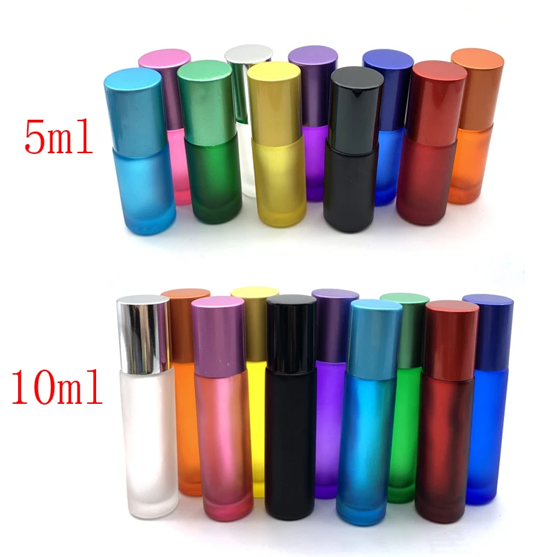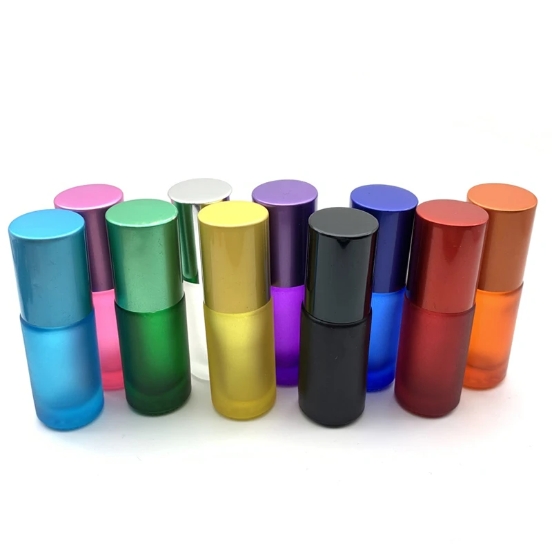 5 мл 10 мл Толстый Стеклянный ролик эфирное масло многоразовые парфюмерные флаконы матовый цветной ролик шаровая бутылка