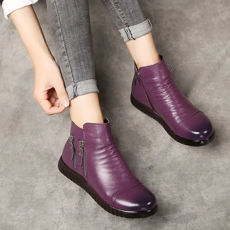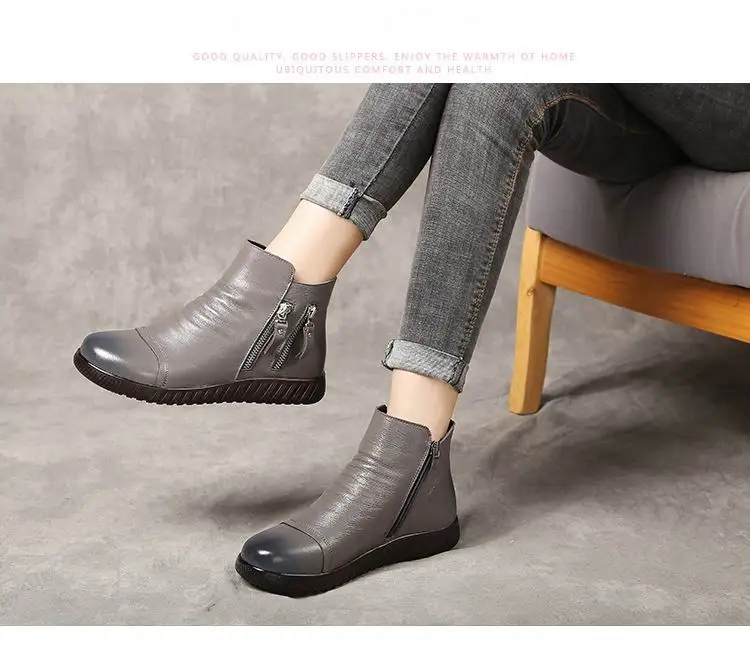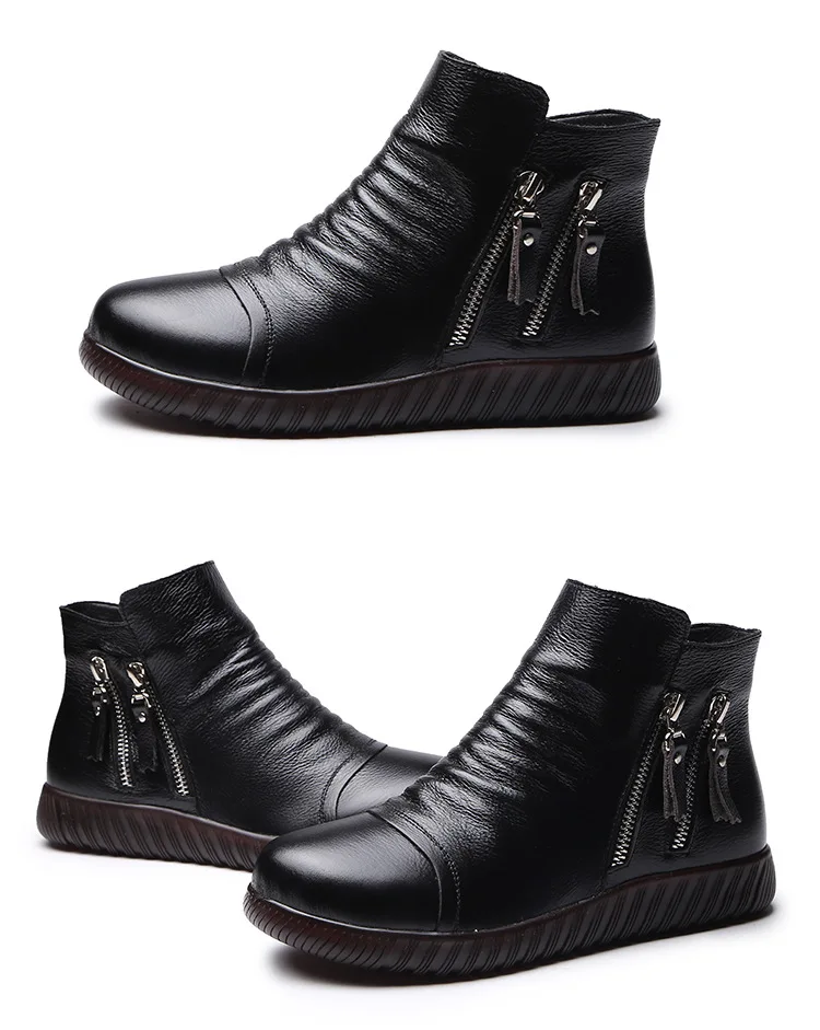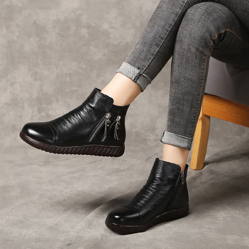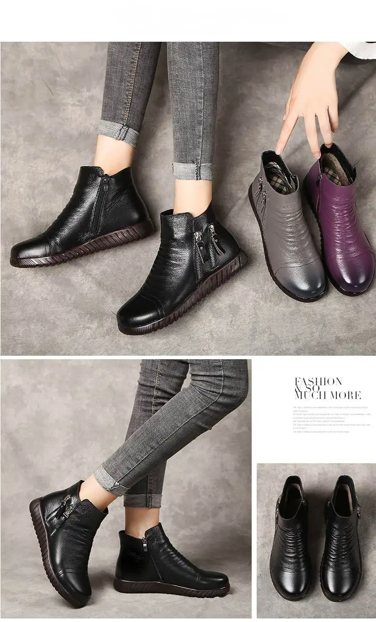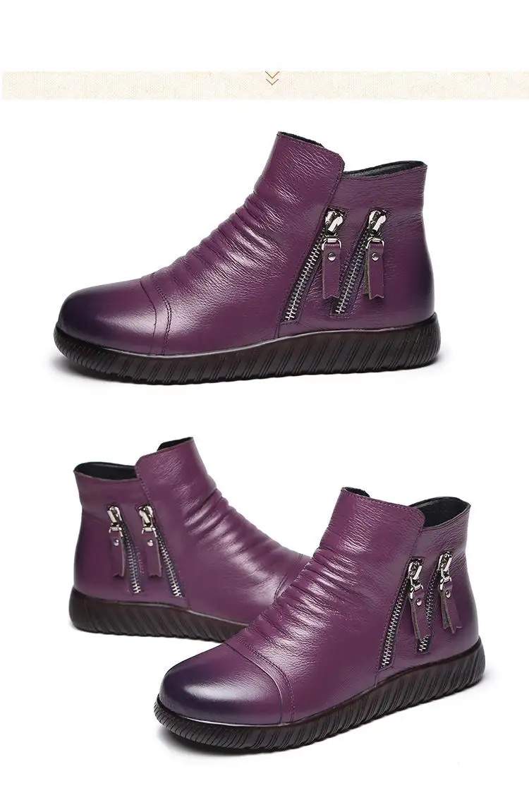 Ботинки женские из натуральной кожи, с плюшевой подкладкой, на танкетке