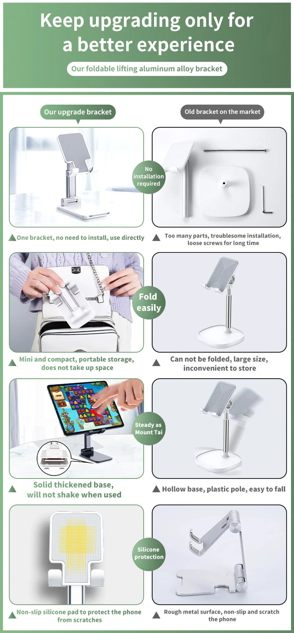 Новая Обновленная Складная портативная подставка1. Поддерживает складывание и усадку2 .. С регулируемым режимом3. Для повышения устойчивости к основанию добавлена пластина из сплава.