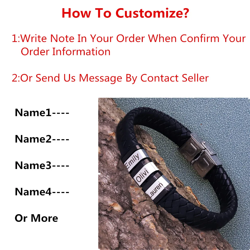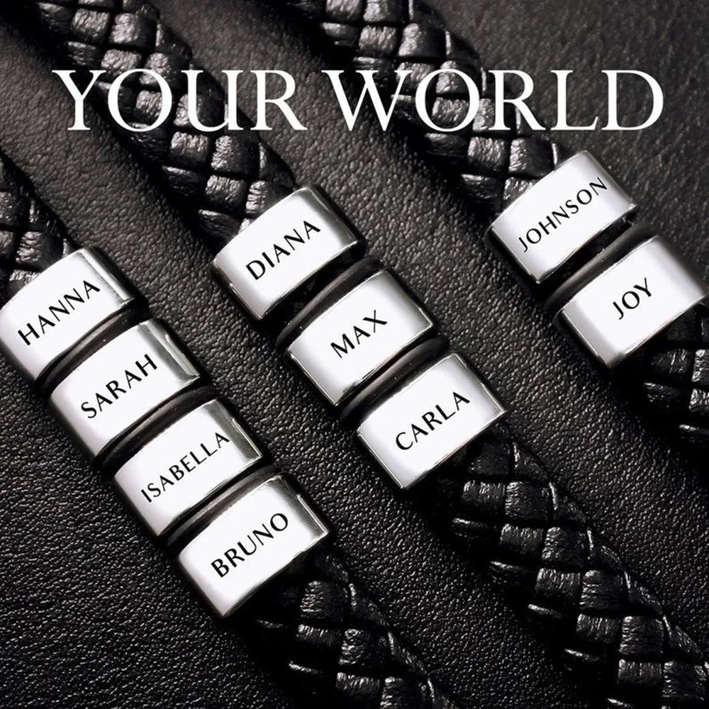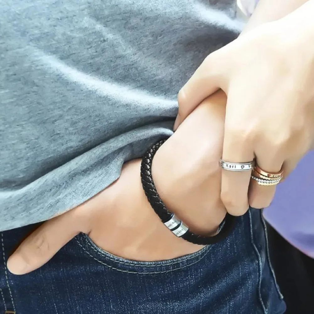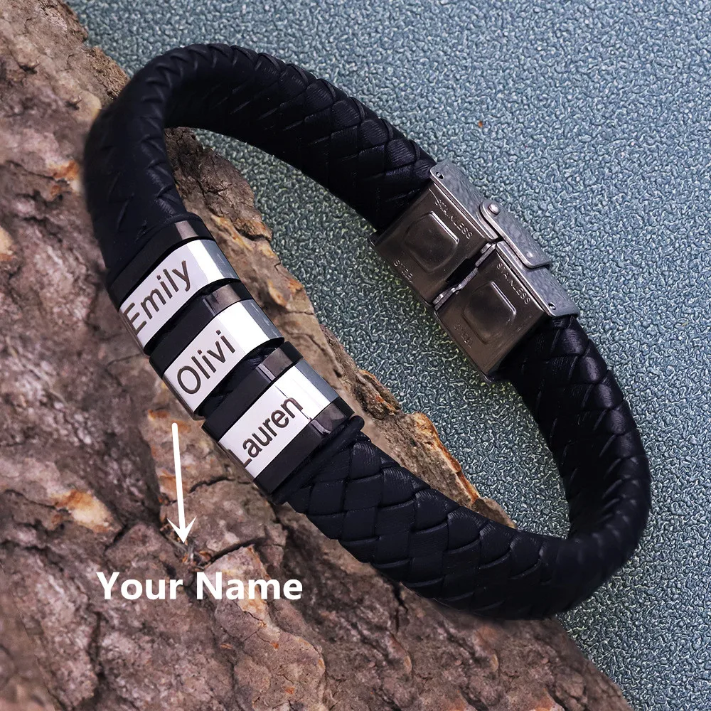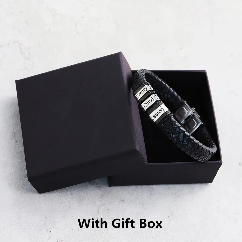 Плетеные веревочные браслеты из натуральной кожи для мужчин, браслеты с именем на заказ, 1-9 именами, ювелирные изделия, подарок с подарочной коробкой