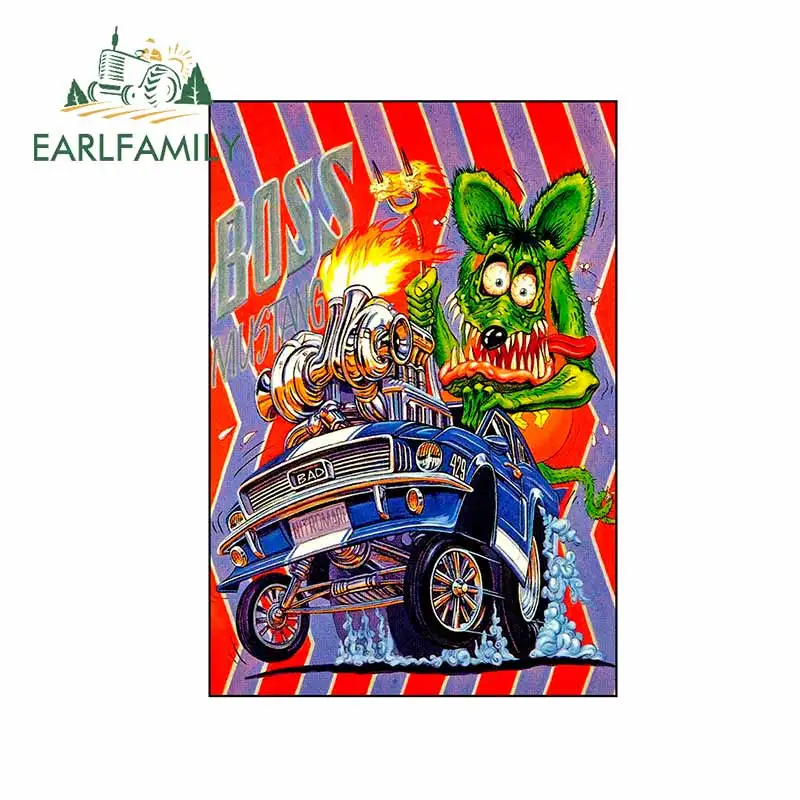 Автомобильная наклейка EARLFAMILY, 13 см х 8,6 см, крыса, Финк, винтажные гоночные плакаты, креативная, сумасшедшая Модифицированная наклейка, виниловая, оригинальная графика