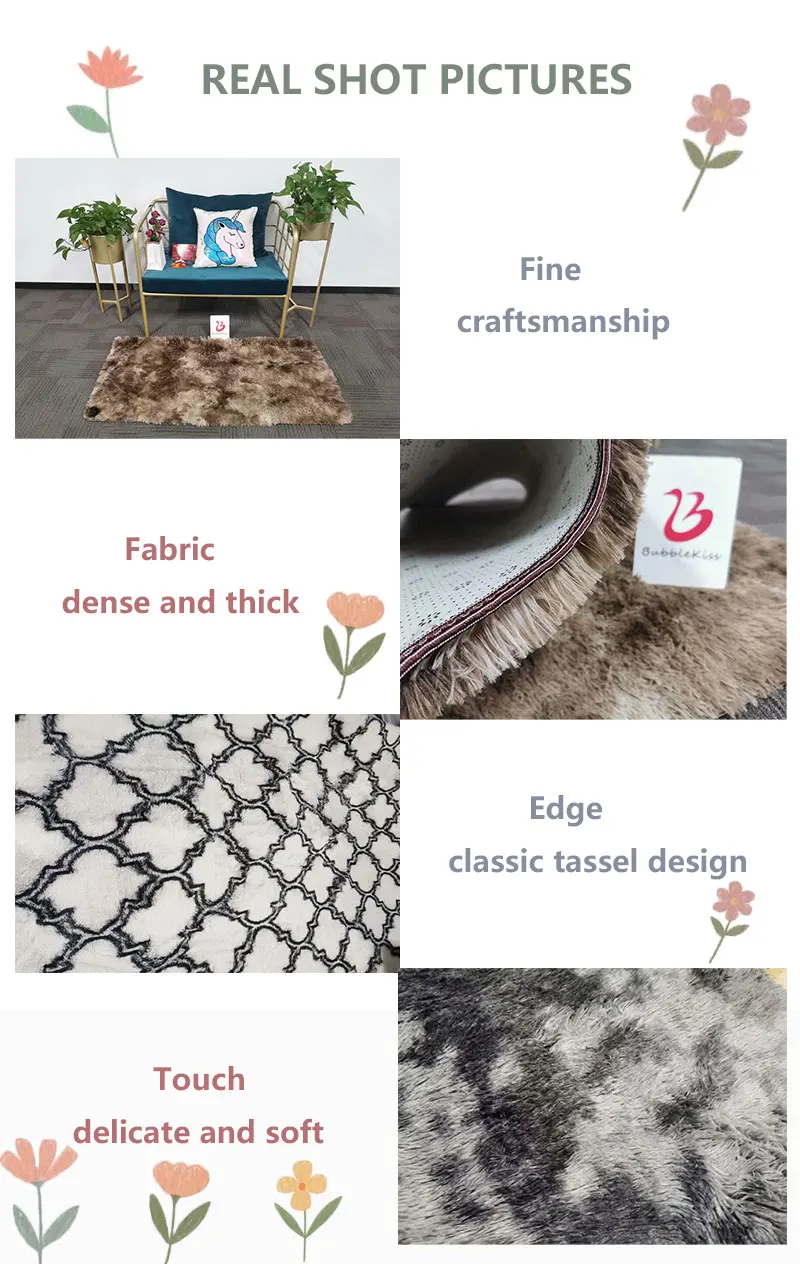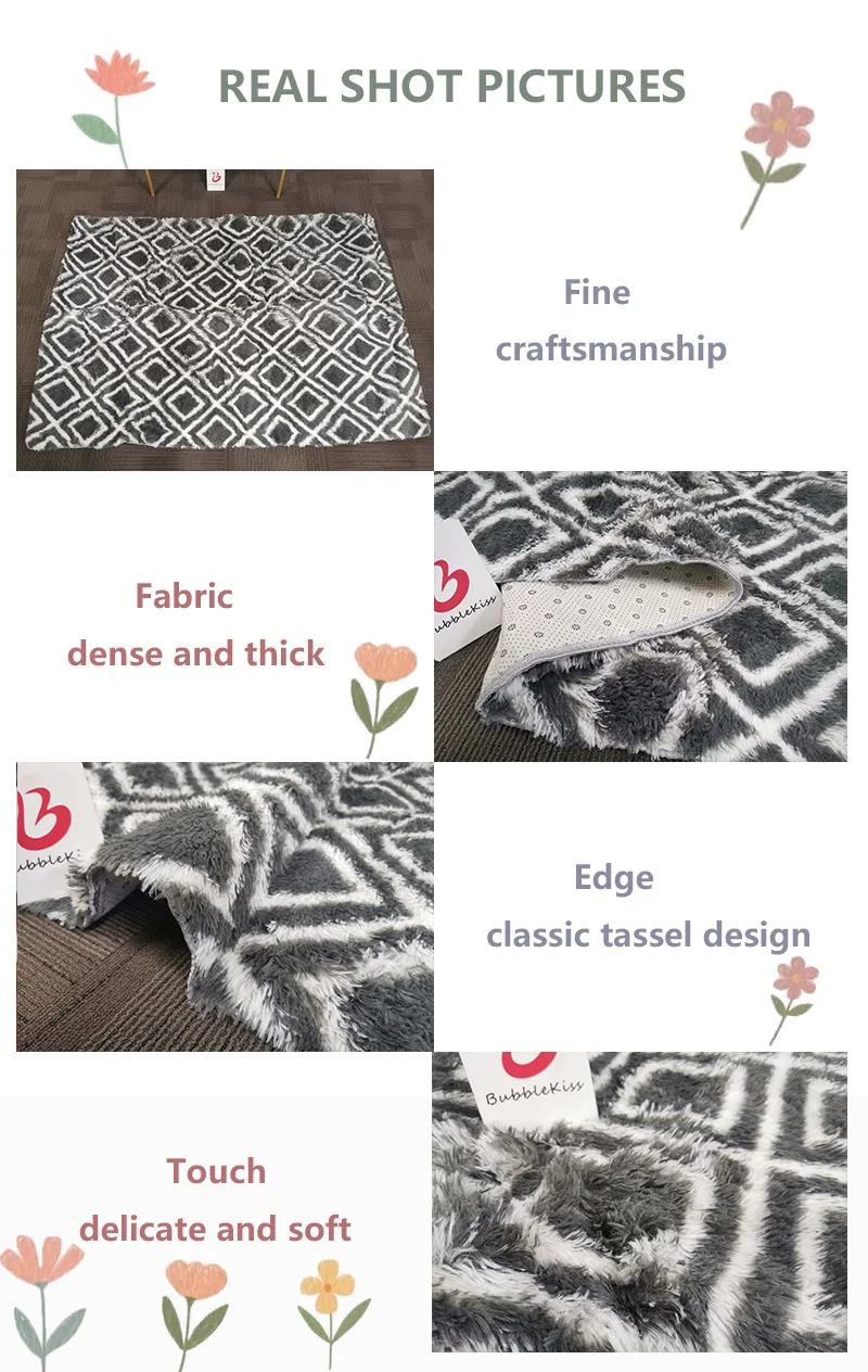 Ковер изготовлен из высококачественной плюшевой ткани, которая мягкая и удобная; Кроме того, ковер имеет нескользящую подошву, так что вы можете иметь хороший пользовательский опыт. Это хороший выбор для домашней жизни.