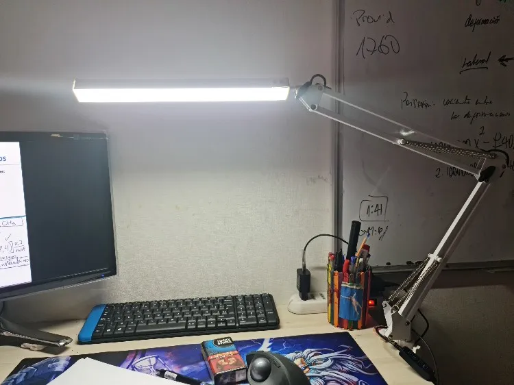 всего 12 дней, отличный результат. шагов яркости 10, но на глаз 7. Не хватает ещё одной степени свободы (поворота лампы относительно стойки в плоскости параллельной столу). При подключении к розетке в первый раз лампа была выключена, но после включения до конца не выключается. Придётся выдёргивать из розетки. Температуры света три - условно желтый, белый, синий. Свет яркий, но комфортный.
