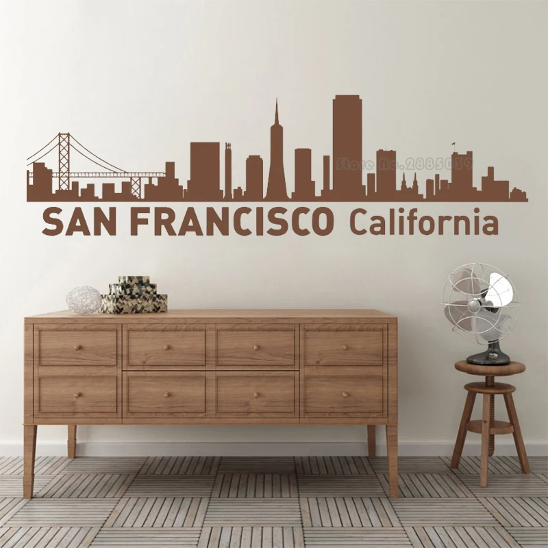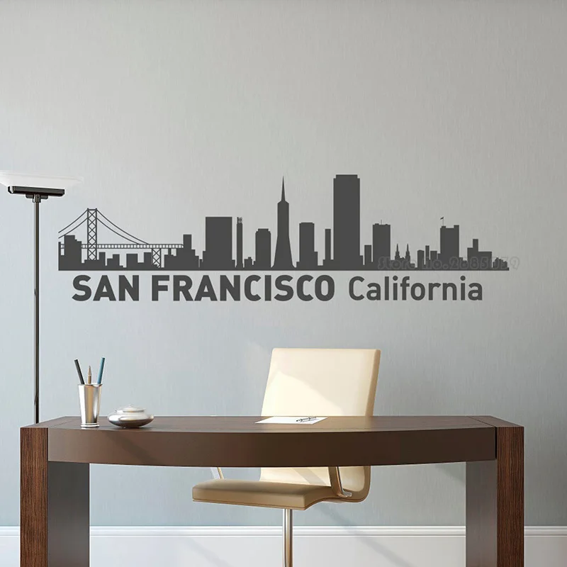 Виниловая наклейка на стену с изображением города, Сан-Франциско, Калифорния, городской силуэт, дизайн интерьера, декор для гостиной, LL907