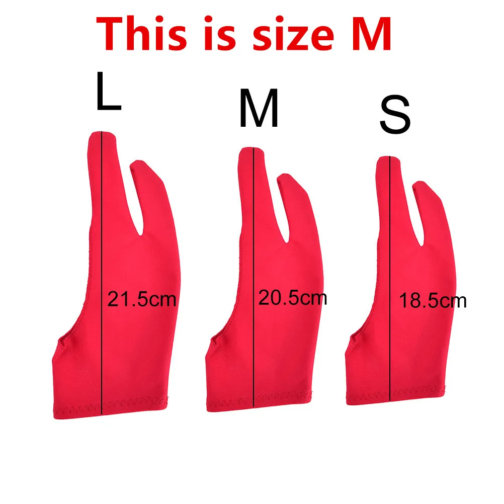 Черная перчатка для рисования художника, 20,5 см, для любого графического планшета, 2 пальца, защита от загрязнения, как для правой, так и для левой руки, размер M