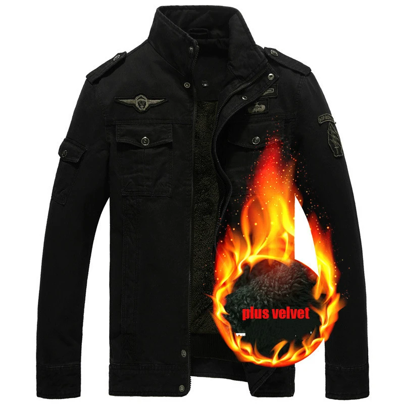 Натуральный хлопок Бархатная зимняя куртка для мужчин куртки на молнии с воротником-стойкой Повседневные куртки для мужчин Военная Униформа большие Размеры летная одежда уличная куртка