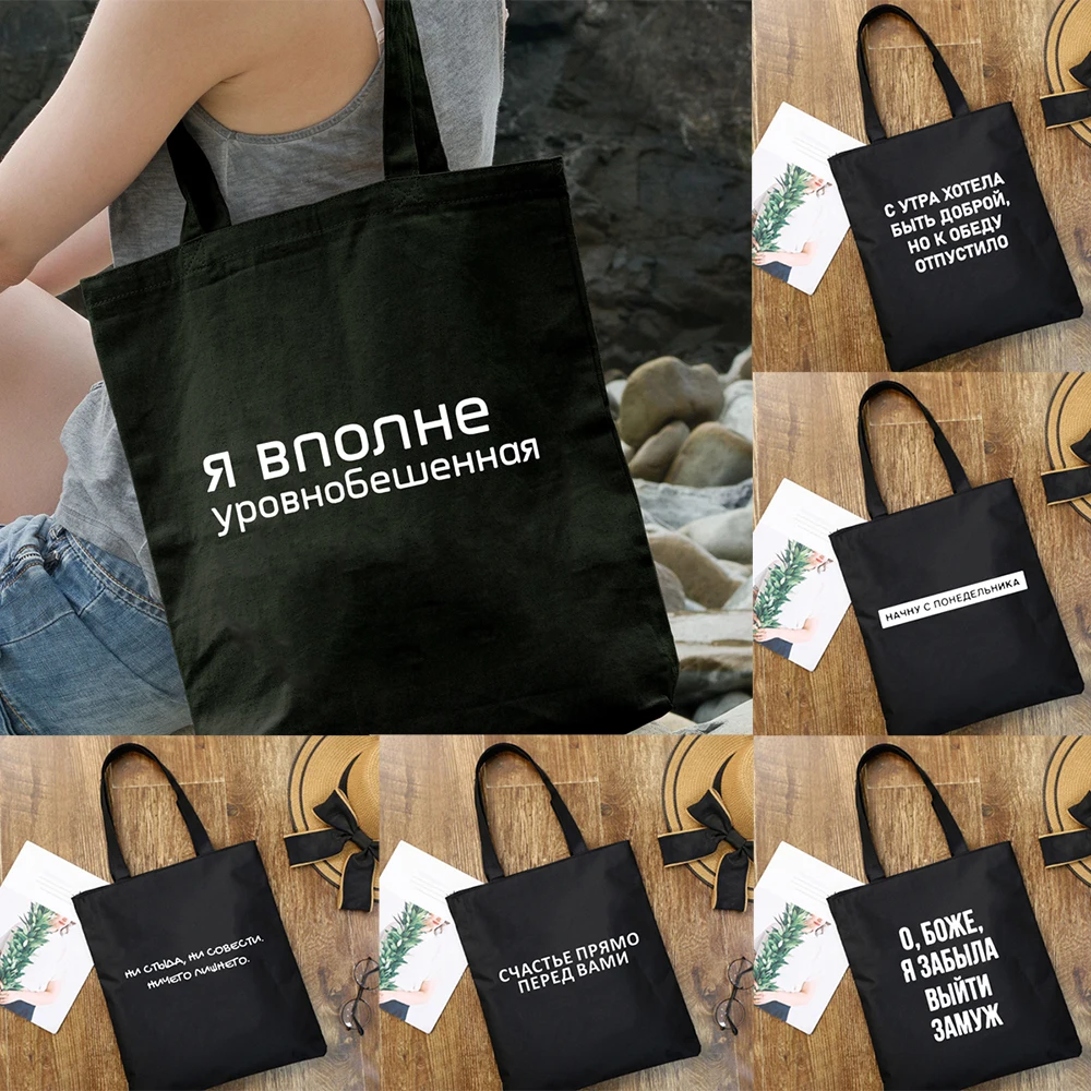 Женская многоразовая сумка для покупок с русскими надписями, Модная...