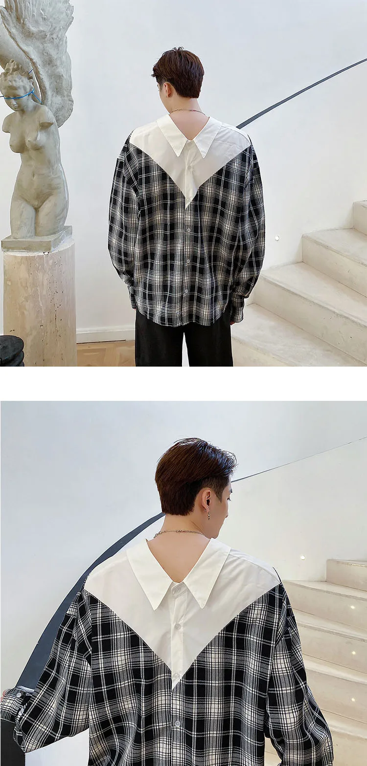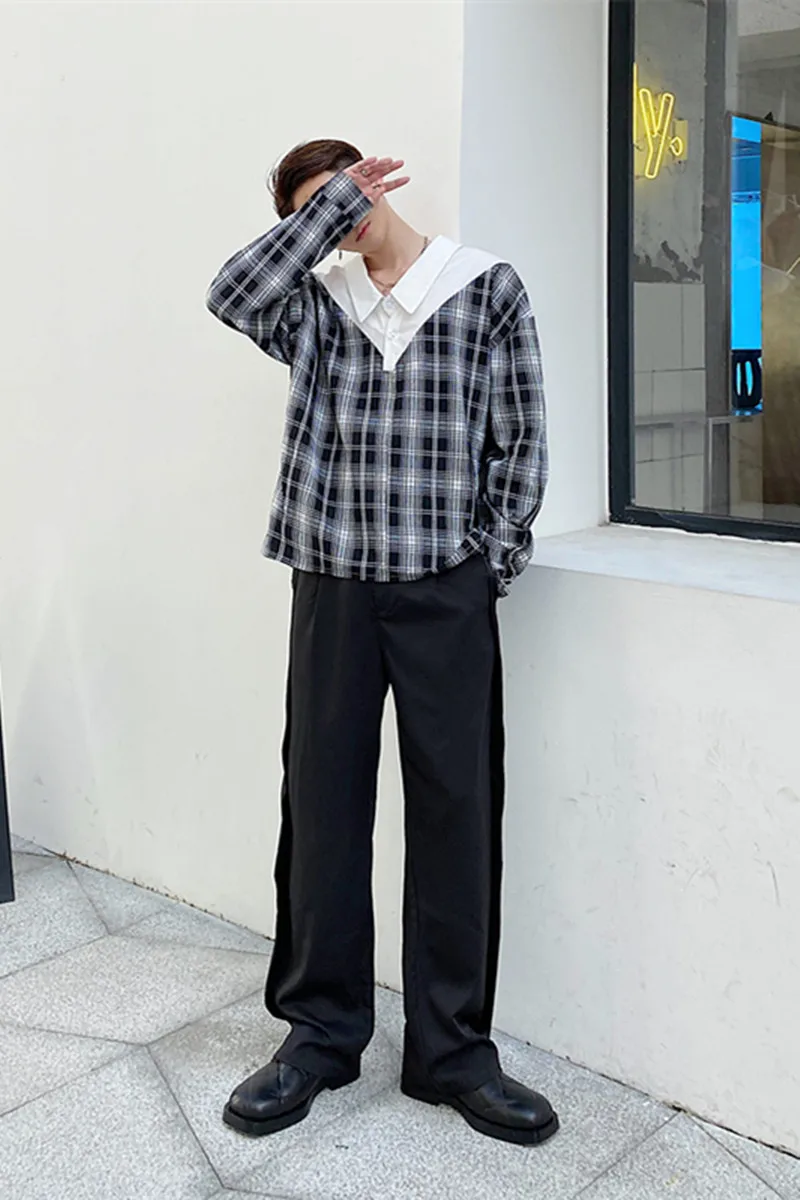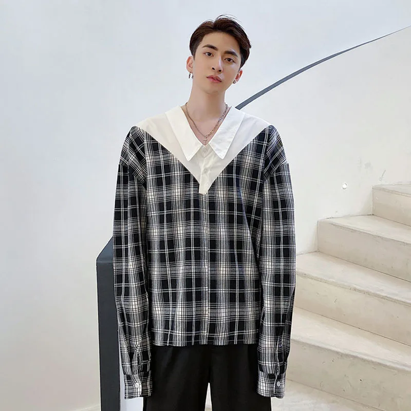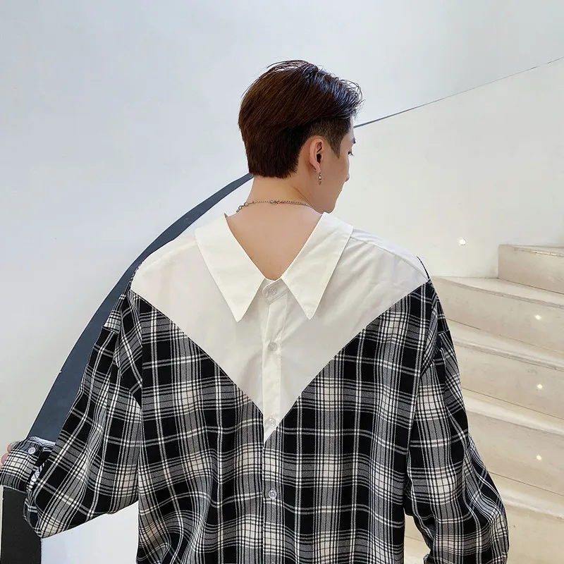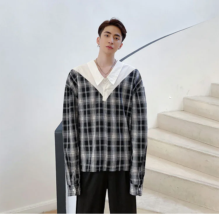 Мужские спереди и длинное сзади прямое шерстяное пальто в клетку с v-образным вырезом, комбинированное платье свободного покроя с длинным рукавом мужской футболка с коротким рукавом для женщин в Корейском стиле, уличная одежда в винтажном стиле; Модные футболки для пары