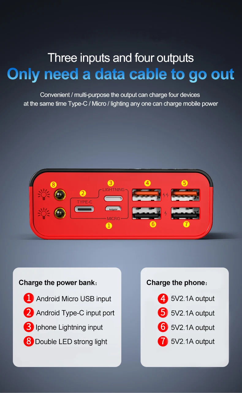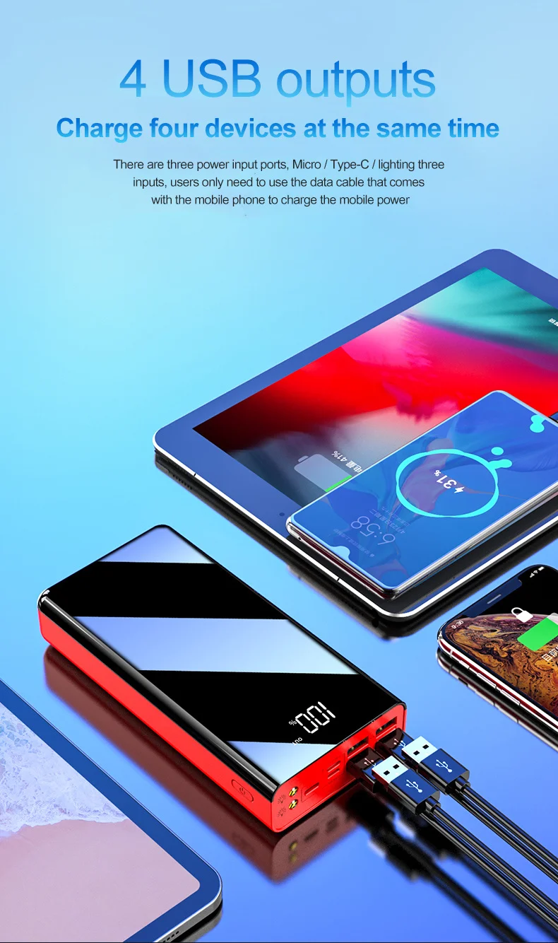 Внешний аккумулятор Da Da Xiong с 4 USB-портами, 50 000 мАч, 120 Вт