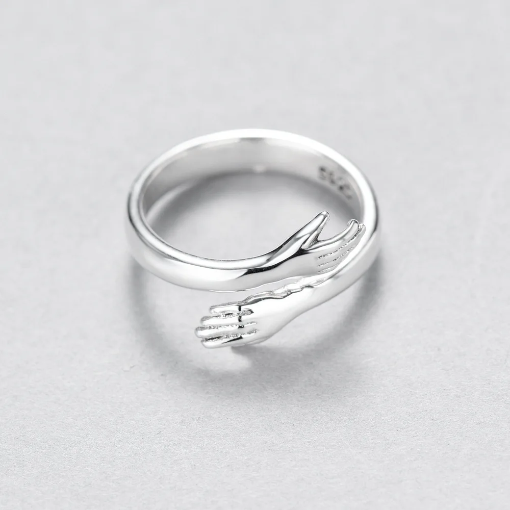 Винтаж любовь Hug Открытые Кольца, пара колец с серебряным покрытием Глянцевая Простой перстень Свадебные Обручение Открытое кольцо ювелирные изделия для влюбленных