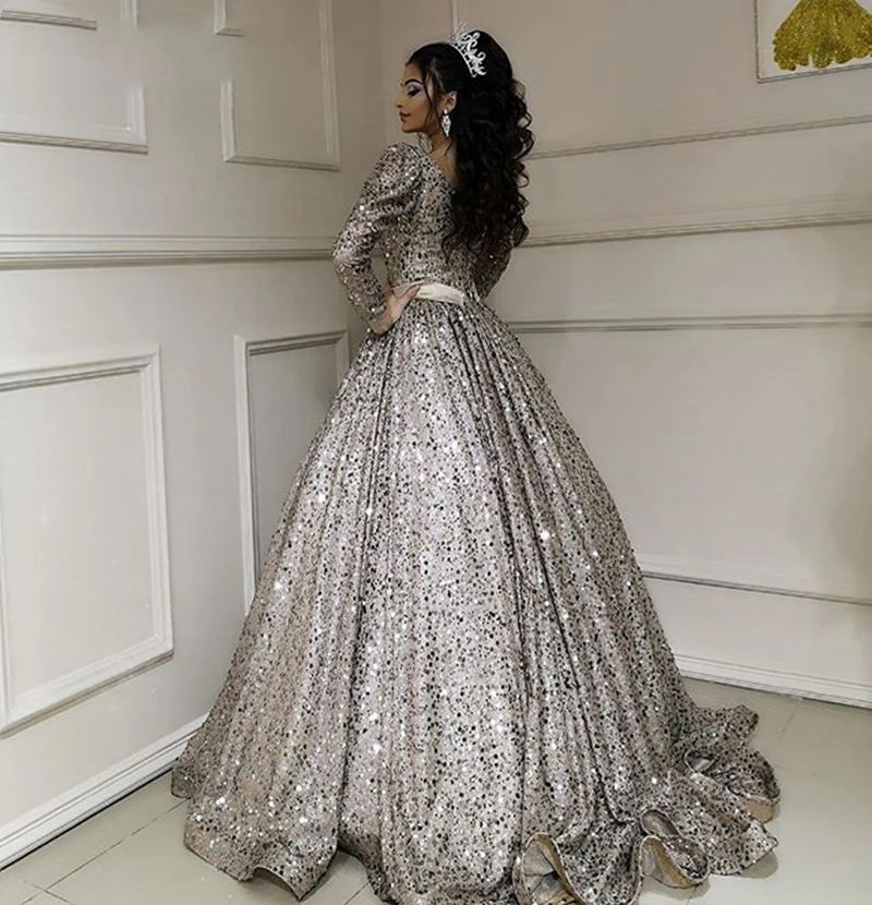 LORIE бальное платье вечерние платья с длинным рукавом 2021 арабские блестящие цвета шампанского Выпускные платья вечерние платья размера плюс