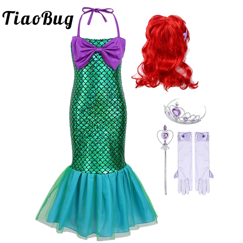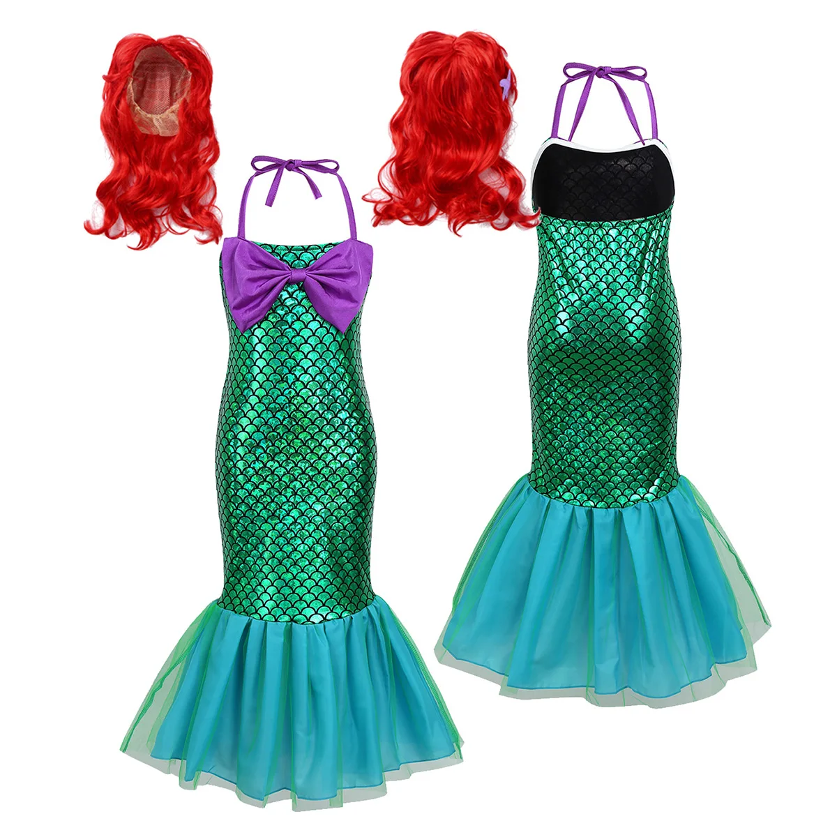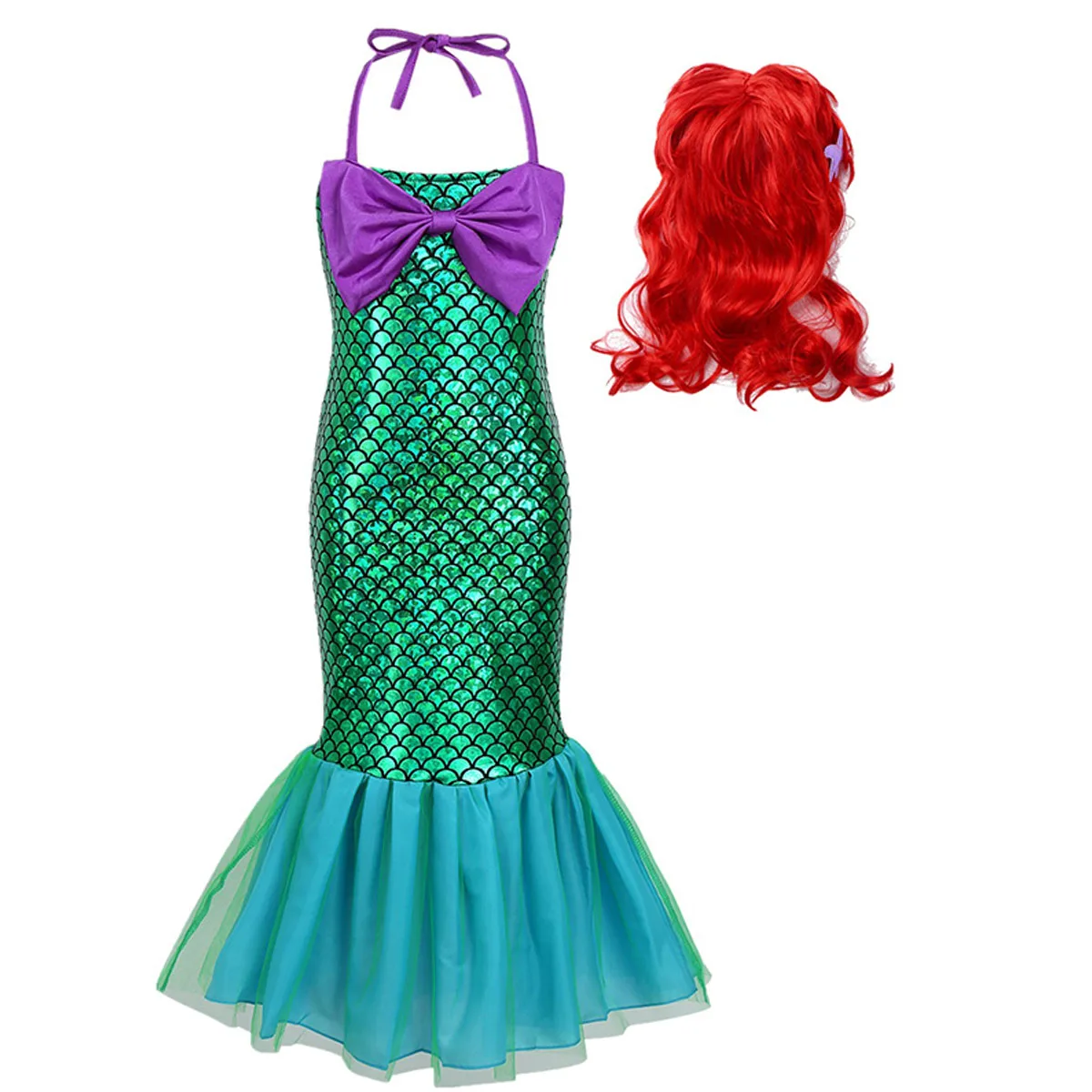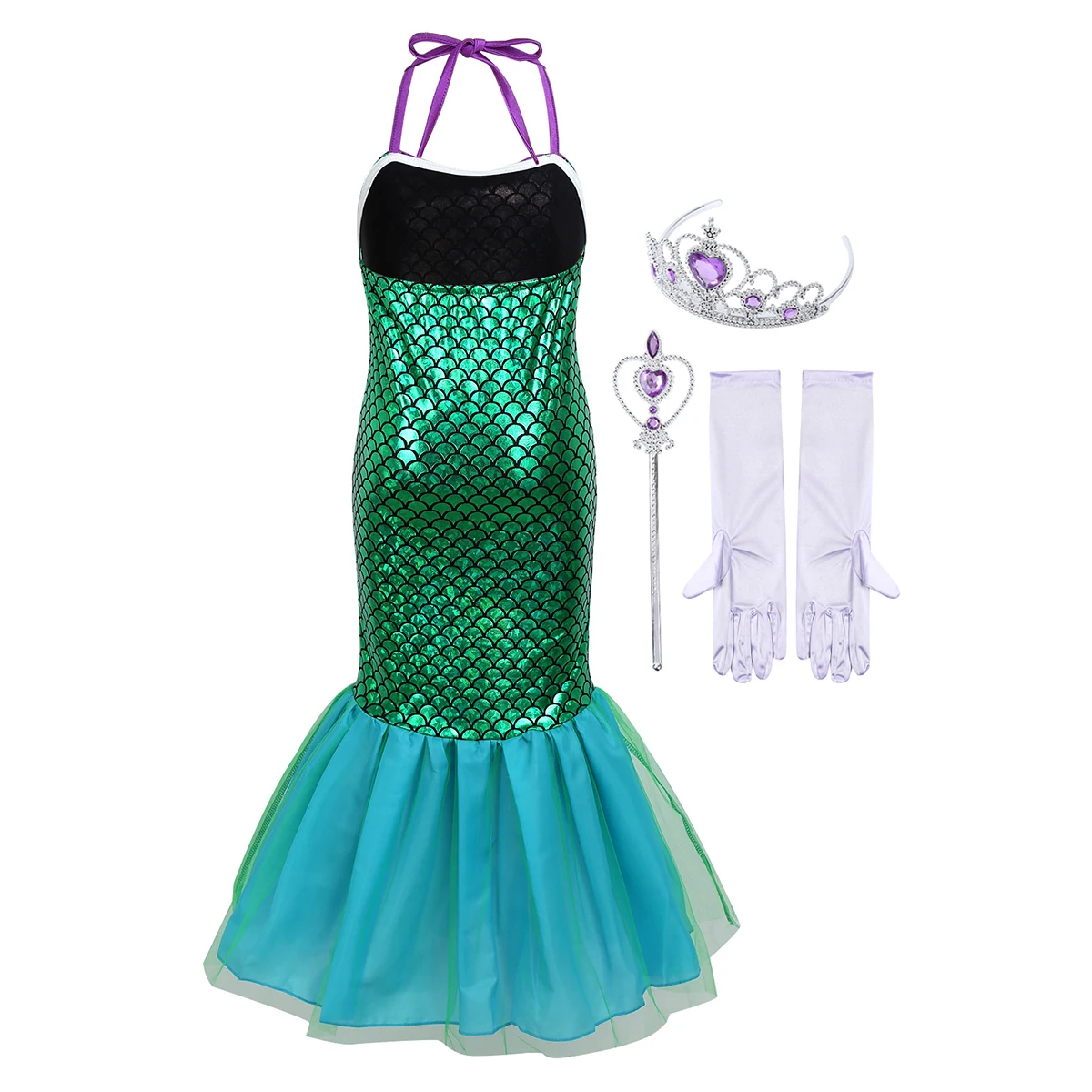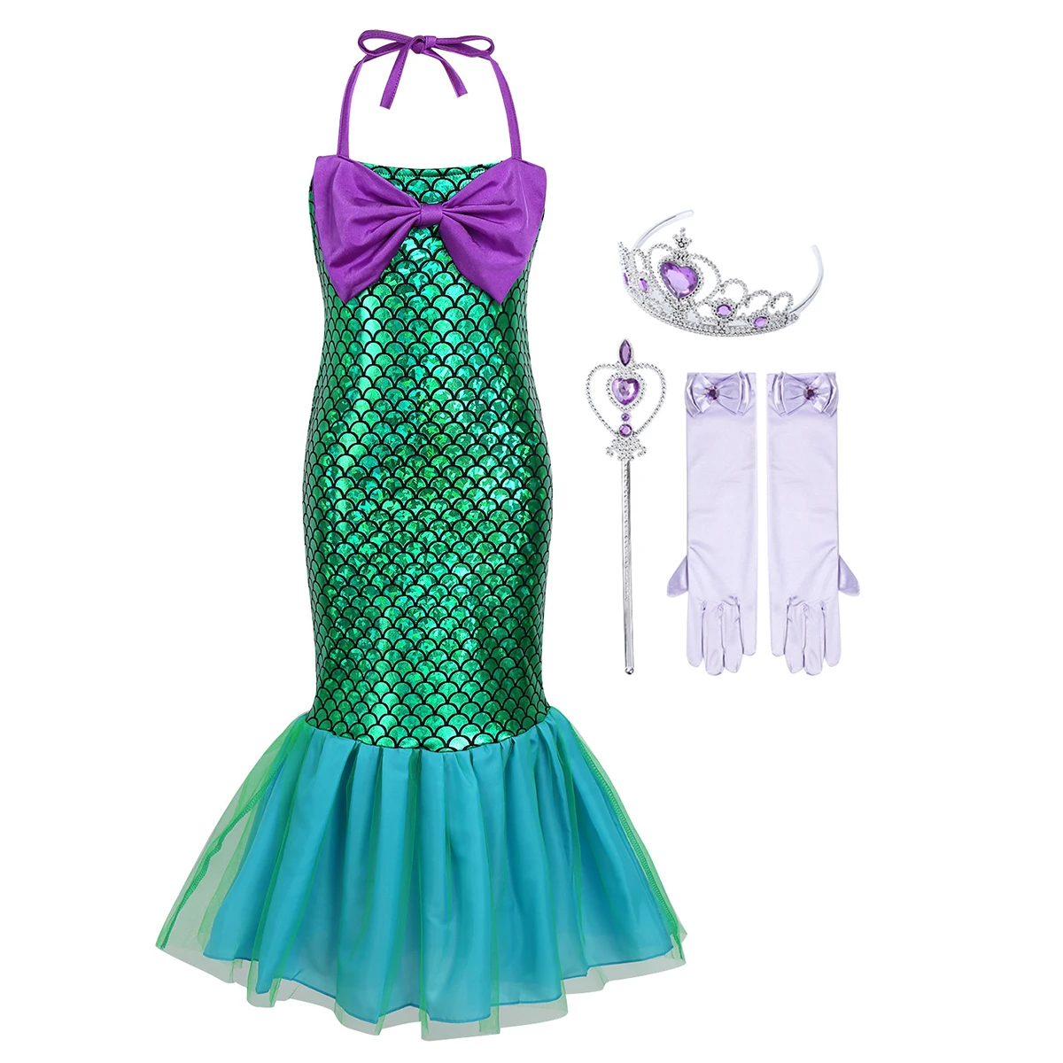 Детский Костюм Русалки для девочек, нарядное платье принцессы для косплея на Хэллоуин и Рождество, с блестящими блестками, для карнавала, вечеринки