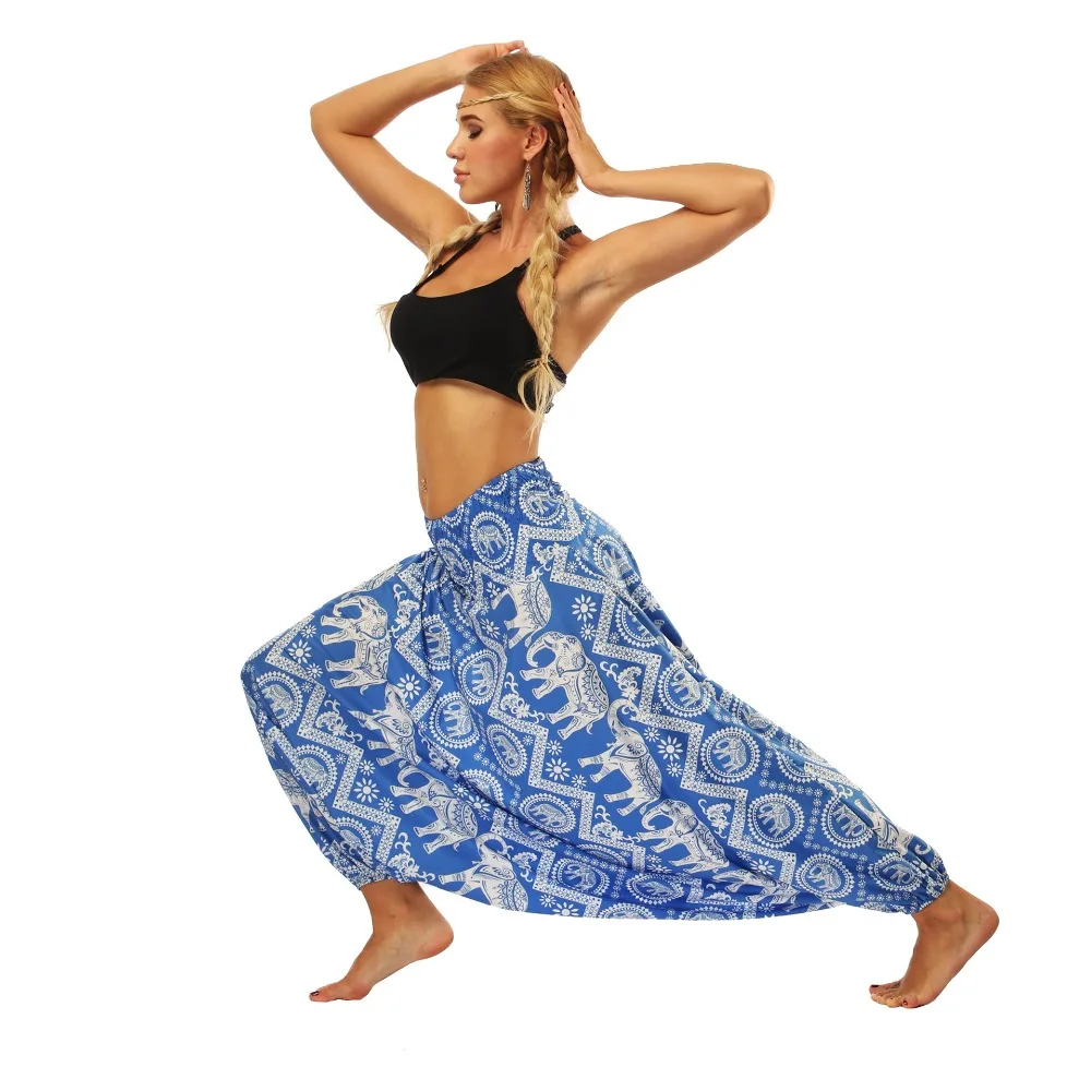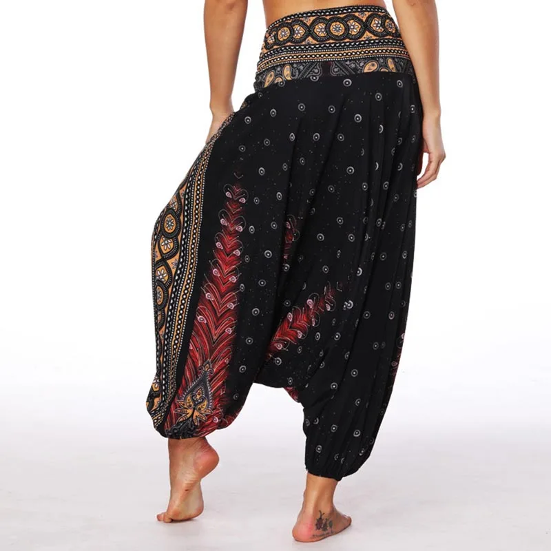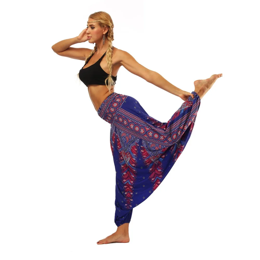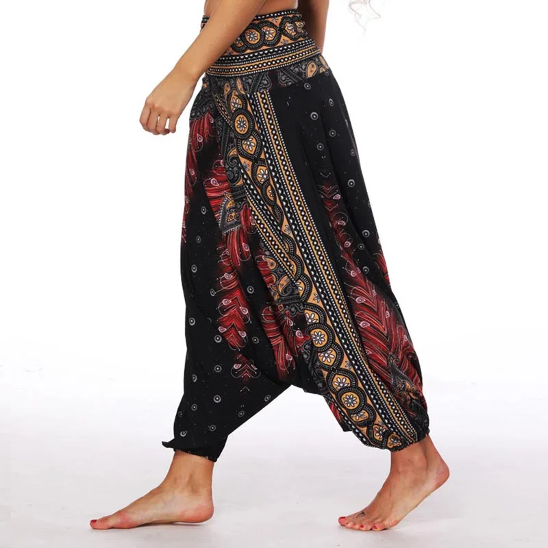 Женский спортивный комбинезон в национальном стиле с цифровым принтом и широкими штанинами-фонариками