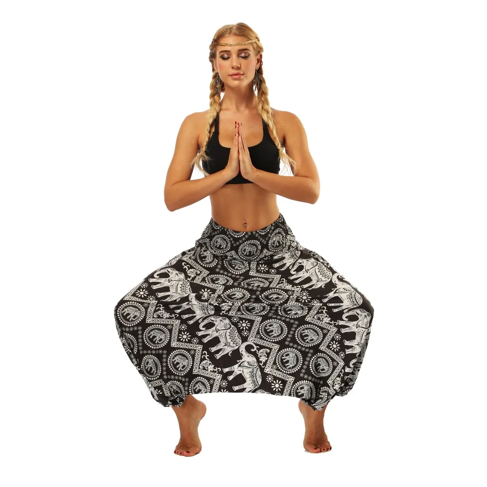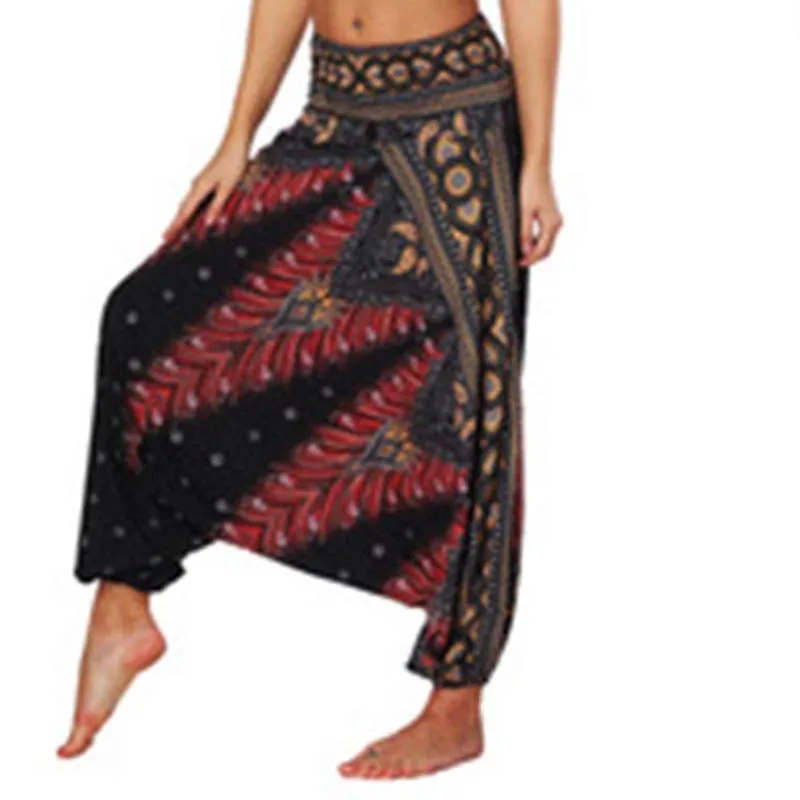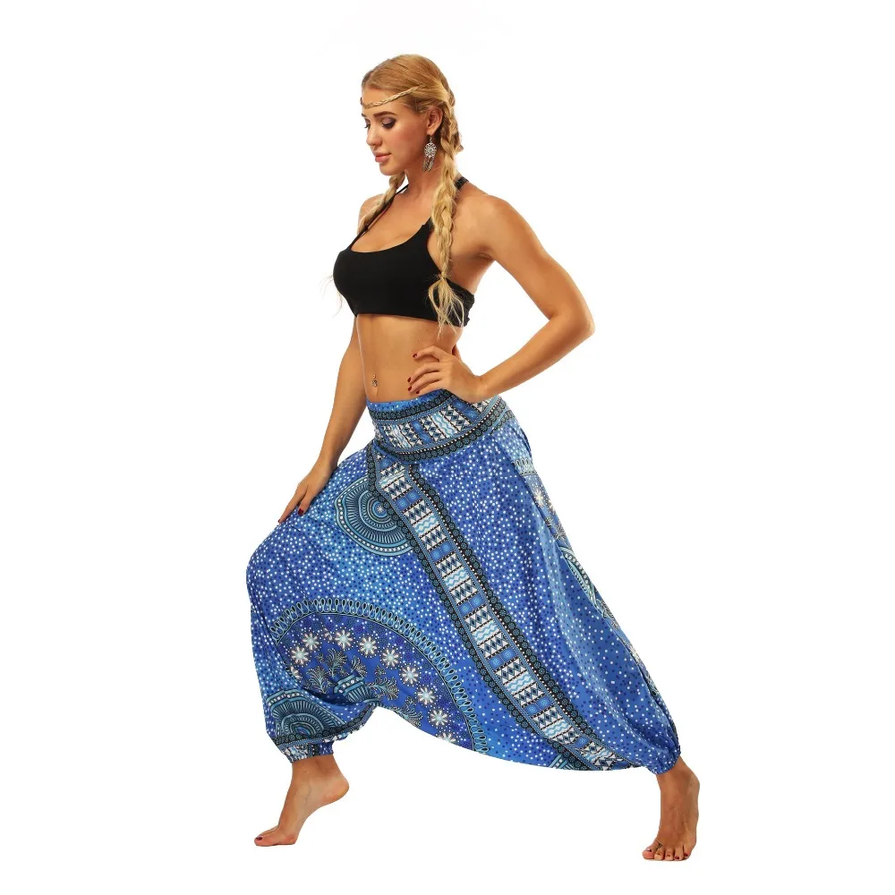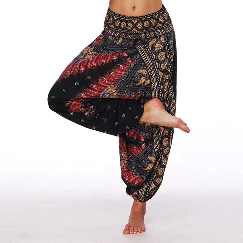 Женский спортивный комбинезон в национальном стиле с цифровым принтом и широкими штанинами-фонариками